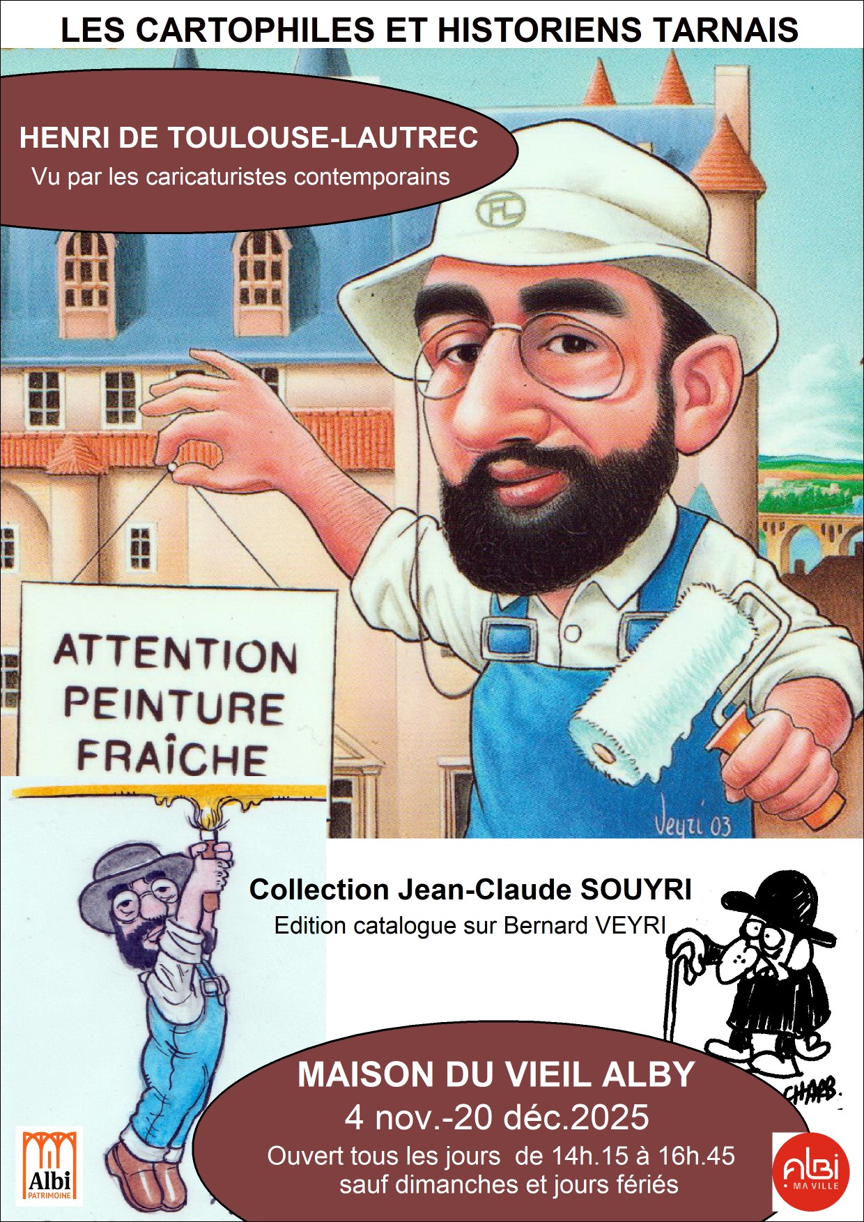 Les Cartophiles et Historiens Tarnais vous présentent leur exposition annuelle. Après une exposition de plus de 300 caricatures à St Just le Martel (87) au centre international de la caricature, fin septembre début octobre 2025, Albi se devait de recevoir la collection de Jean-Claude SOUYRI …à quelques centaines de mètres de sa maison natale.