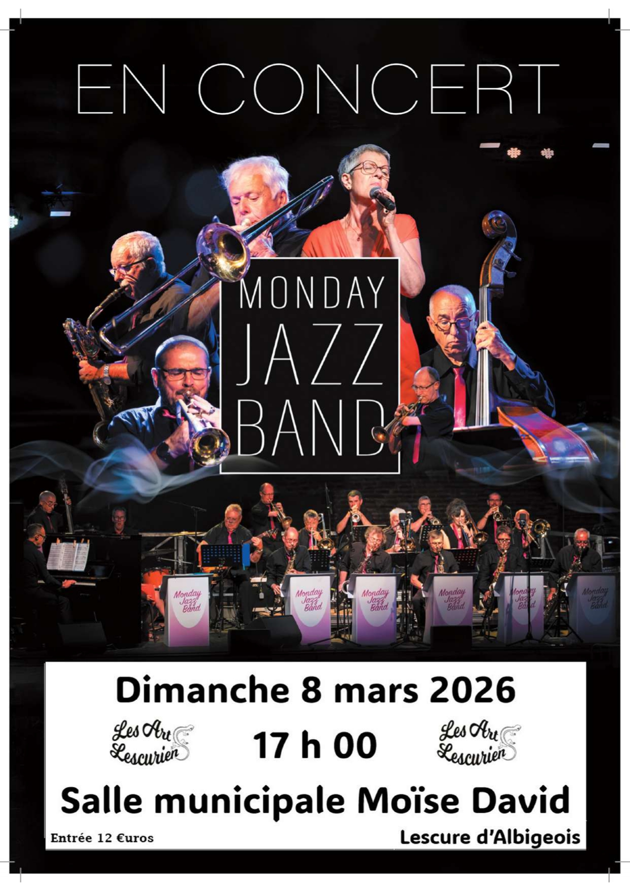 Le MONDAY JAZZ BAND, composé d’une vingtaine de musiciens accompagné par Florence De Gineste chanteuse du groupe, se produiront en concert pour réveiller et faire vibrer nos sens le DIMANCHE 8 MARS à 17h en cette journée dédiée aux « gentes dames ».