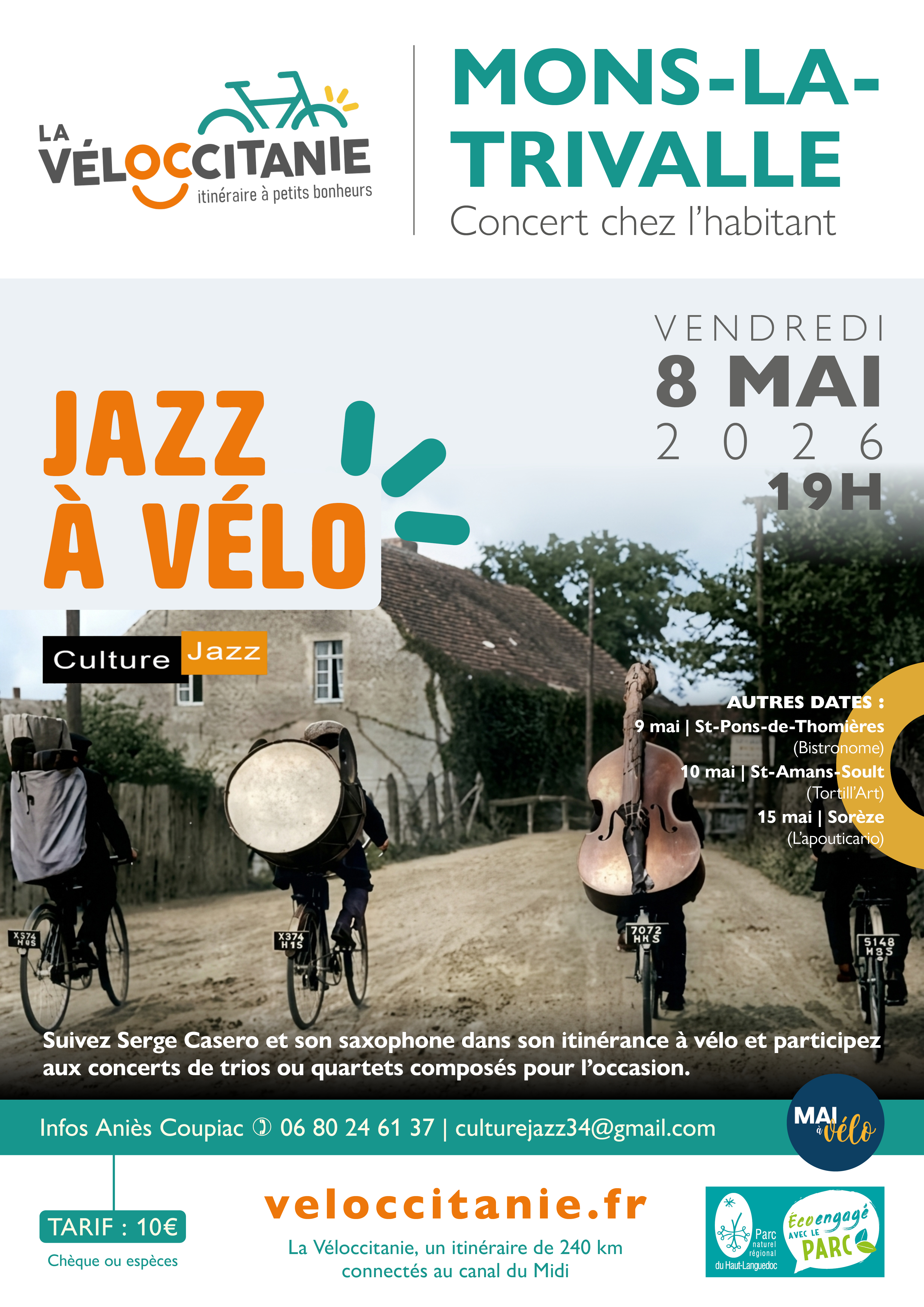 Le projet original « Jazz à vélo », porté par l’association Culture Jazz et soutenu par le Parc naturel régional du Haut-Languedoc, allie mobilité douce et rencontres musicales de proximité.