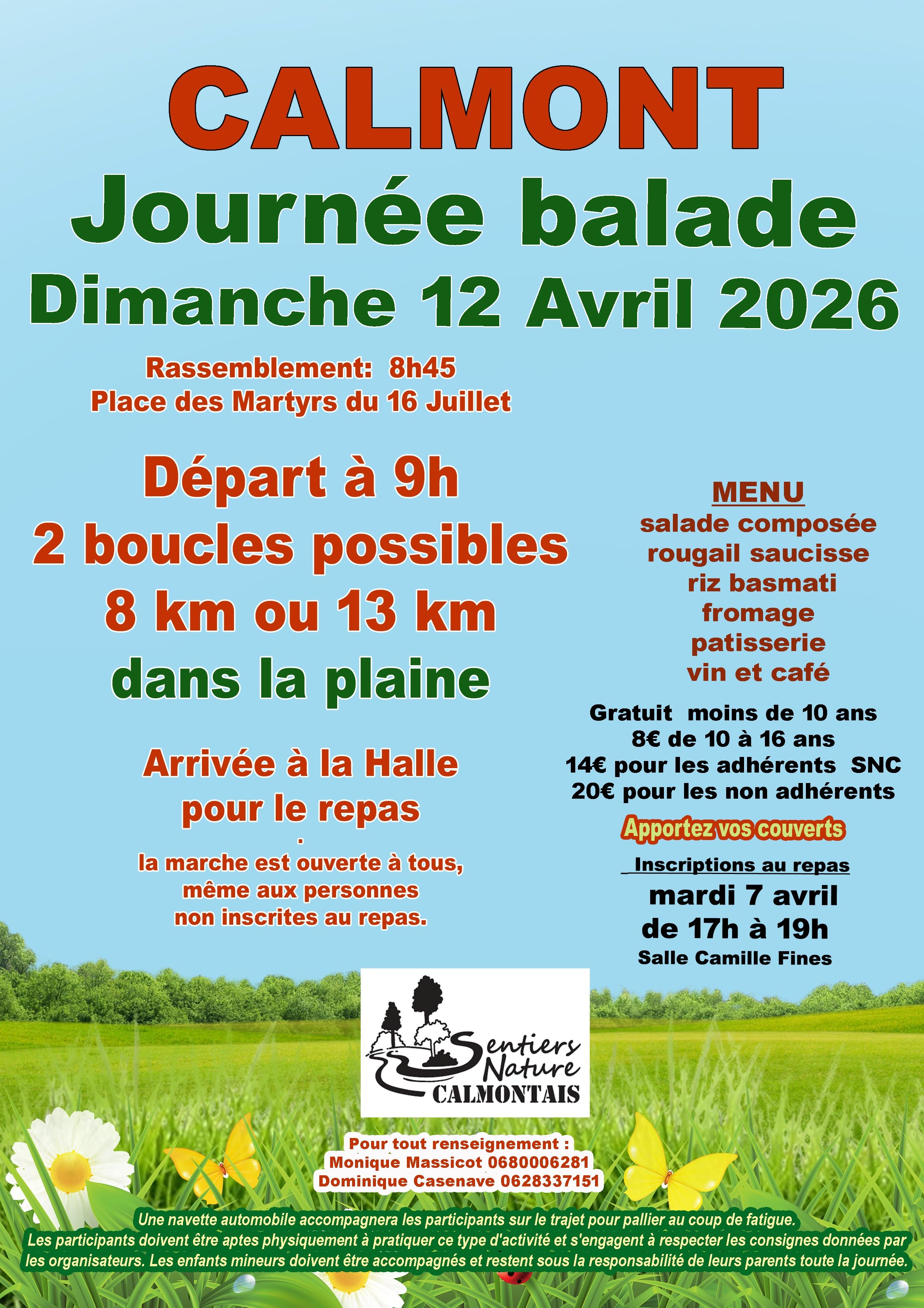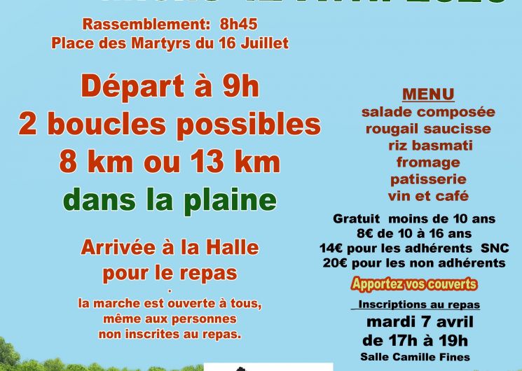 Inscriptions obligatoires pour le repas, par téléphone ou en vous rendant le 07/04 de 17h à 19h salle Camille Fines.
