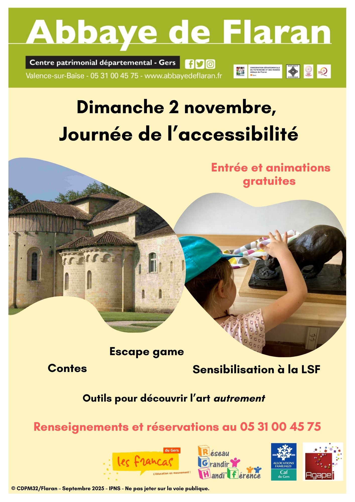 • Toute la journée : mise à disposition des dispositifs existants à l’abbaye de Flaran pour l’accessibilité à la culture pour toutes et tous :