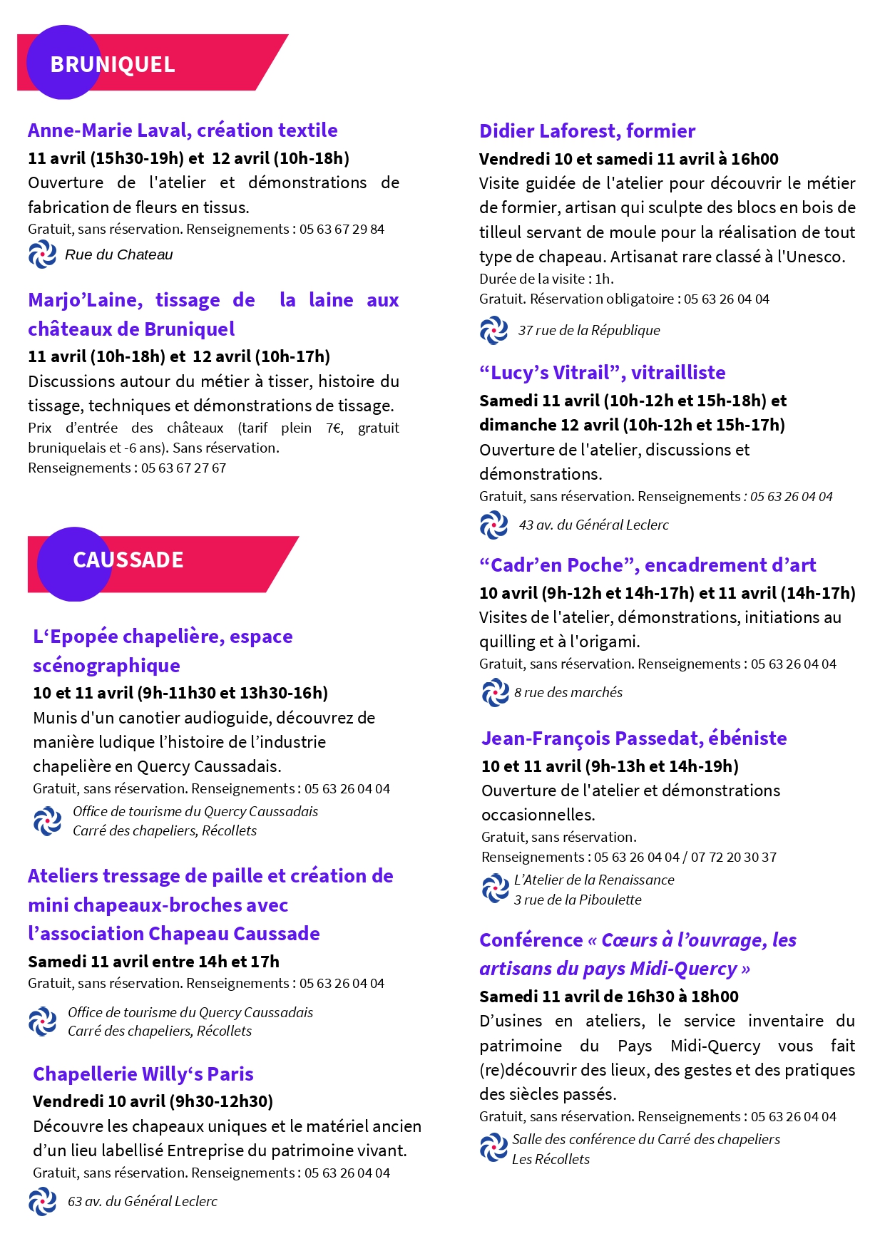 Organisé par L’office de tourisme Causses et Gorges de l’Aveyron, le PETR du Pays Midi-Quercy et la Chambre des métiers et de l’artisanat.