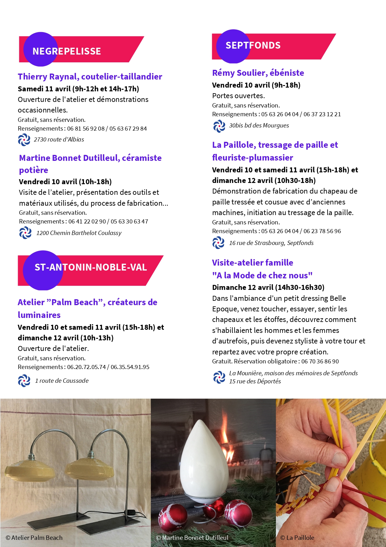 Ils vous présenteront leurs métiers, leurs gestes, leurs matières et leurs créations originales.