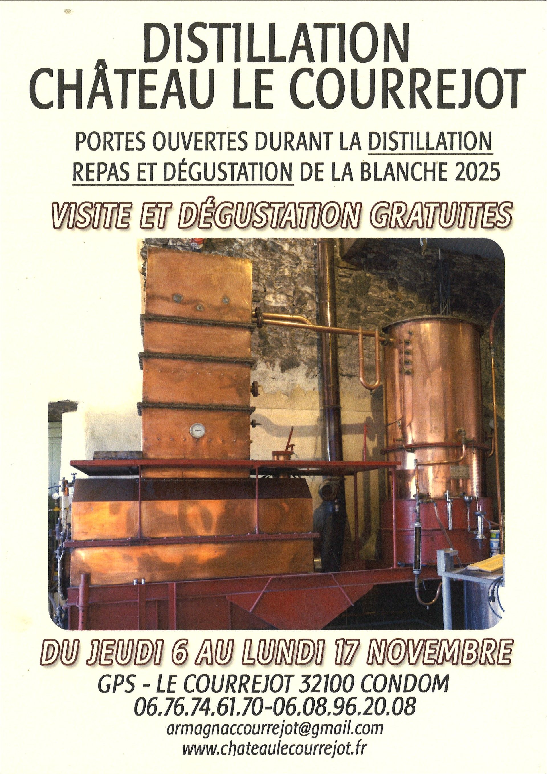 Du 6 au 17 novembre, le Château Le Courréjot ouvre ses portes durant sa distillation.