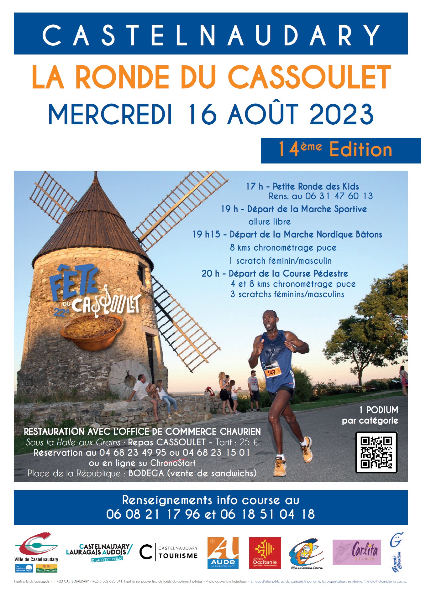 Chaque été, Castelnaudary lance sa Fête du Cassoulet avec un rendez-vous aussi sportif que gourmand : La Ronde du Cassoulet. Le mercredi 20 août 2025, dès 19h, les rues de la ville vibreront au rythme des foulées des participants, sur un parcours qui retrouve cette année son tracé et sa date d’origine. Deux formats au choix – 4 km ou 8 km, en mode course ou marche – pour que chacun puisse vivre l’événement à son rythme.