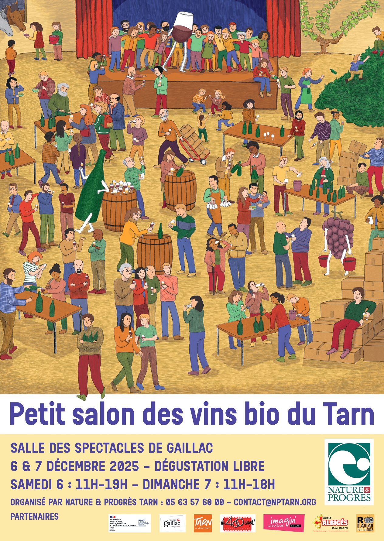 Une vingtaine de vigneron.nes sous mention Nature & Progrès et/ou en Agriculture Biologique vous présente la 23 ° édition du Petit Salon des Vins Bios du Tarn. Le salon dédiée aux amateurs de vin qui casse les codes.