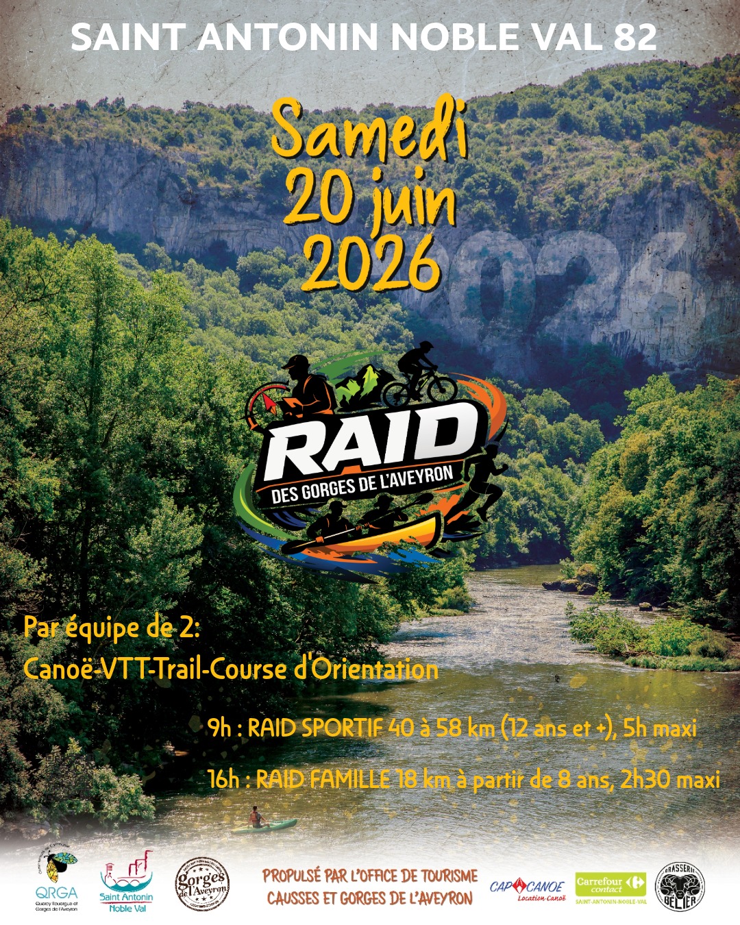 Le samedi 20 juin 2026, les Gorges de l’Aveyron deviennent le terrain de jeu d’une aventure sportive hors du commun. À Saint-Antonin-Noble-Val, le Raid des Gorges de l’Aveyron 2026 invite les amateurs de nature, de défi et de sensations à se lancer dans une expérience intense mêlant sport, stratégie et esprit d’équipe.