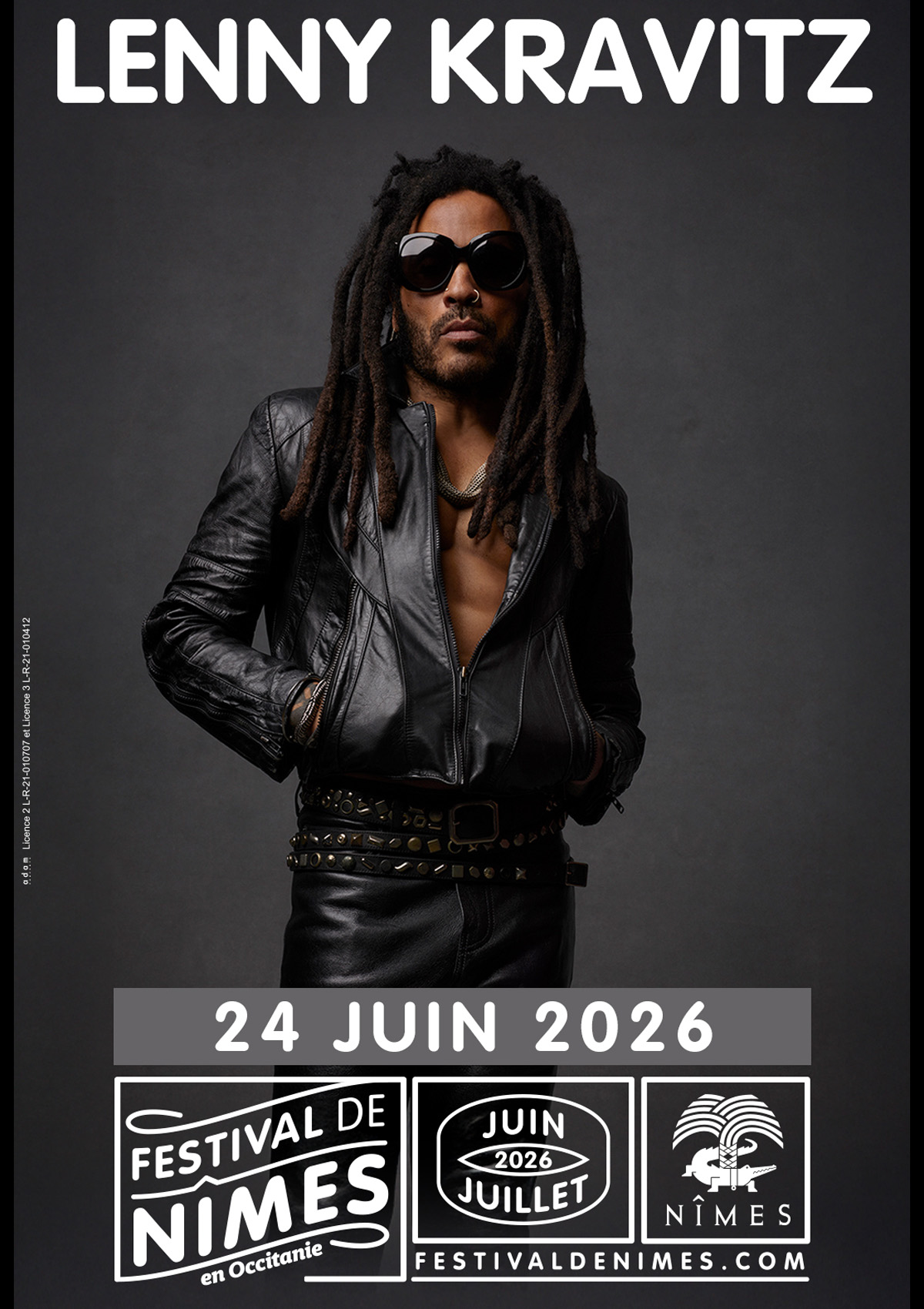 Prévente exclusive sur www.lennykravitz.com le Mercredi 19 Novembre 2025 à 10h00 et sur www.festivaldenimes.com du Mercredi 19 Novembre 2025 à 10h00 au Vendredi 21 Novembre 2025.