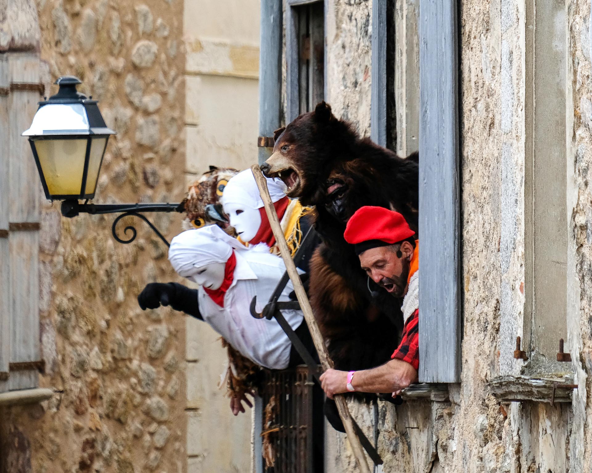 Découvrez les fascinantes fêtes de l’ours, inscrites au Patrimoine Culturel Immatériel de l’UNESCO, qui ouvrent le Carnaval et annoncent la fin de l’hiver. La légende raconte qu’un ours enlève une bergère ; les chasseurs se lancent alors à sa poursuite. Après une longue traque, ils parviennent à capturer l’ours et sauver la jeune fille. Cette tradition s’inspire de Jean de l’Ours, être mi-homme mi-animal doté d’une force prodigieuse. Symbole du passage à l’âge adulte, la fête voit de jeunes hommes déguisés en ours parcourir les villages pour désigner les jeunes filles prêtes à se marier ; une fois capturé, l’ours est rasé publiquement pour redevenir humain. Une version junior, l’Os petit, initie les plus jeunes à ce rituel.