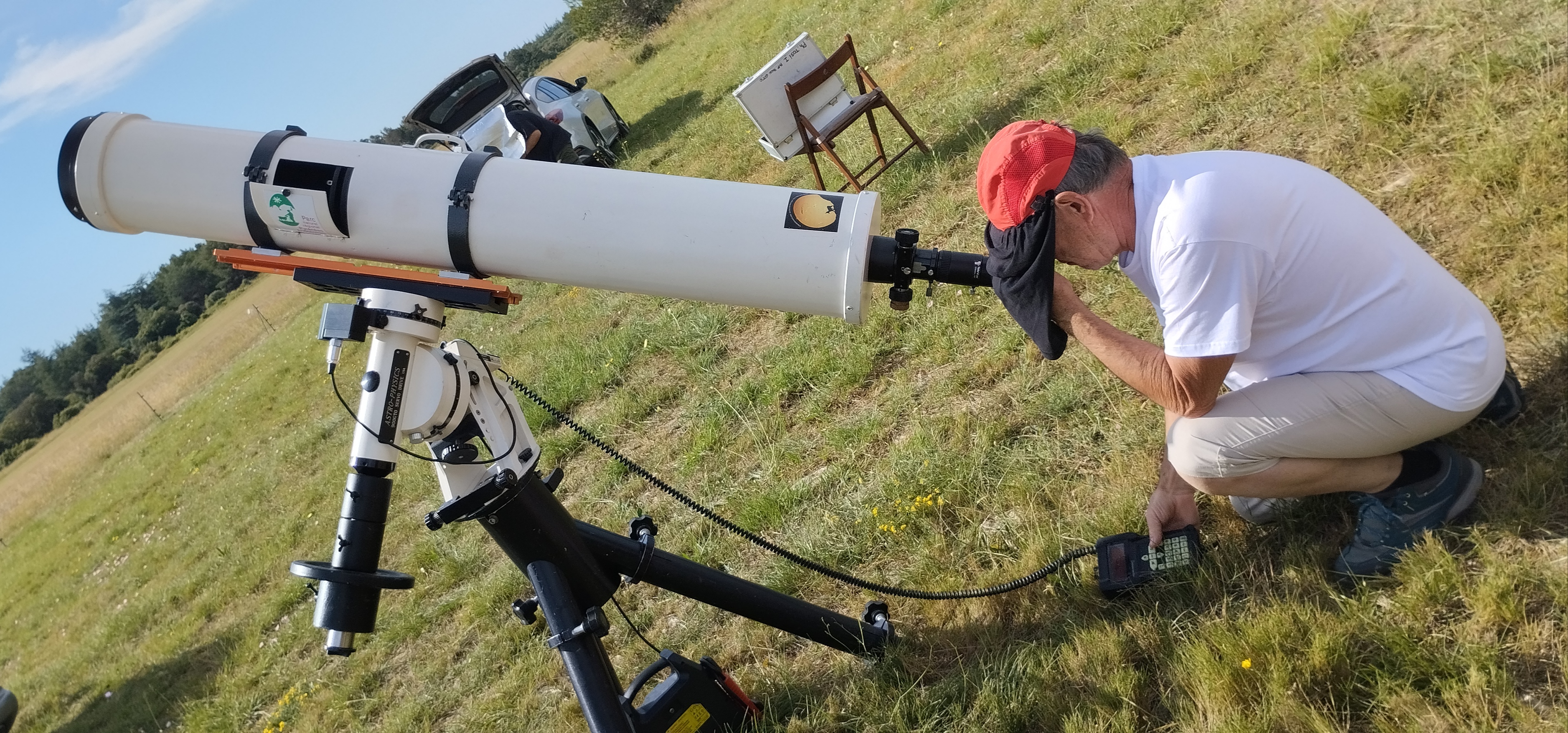 Observation du soleil avec une lunette spéciale.