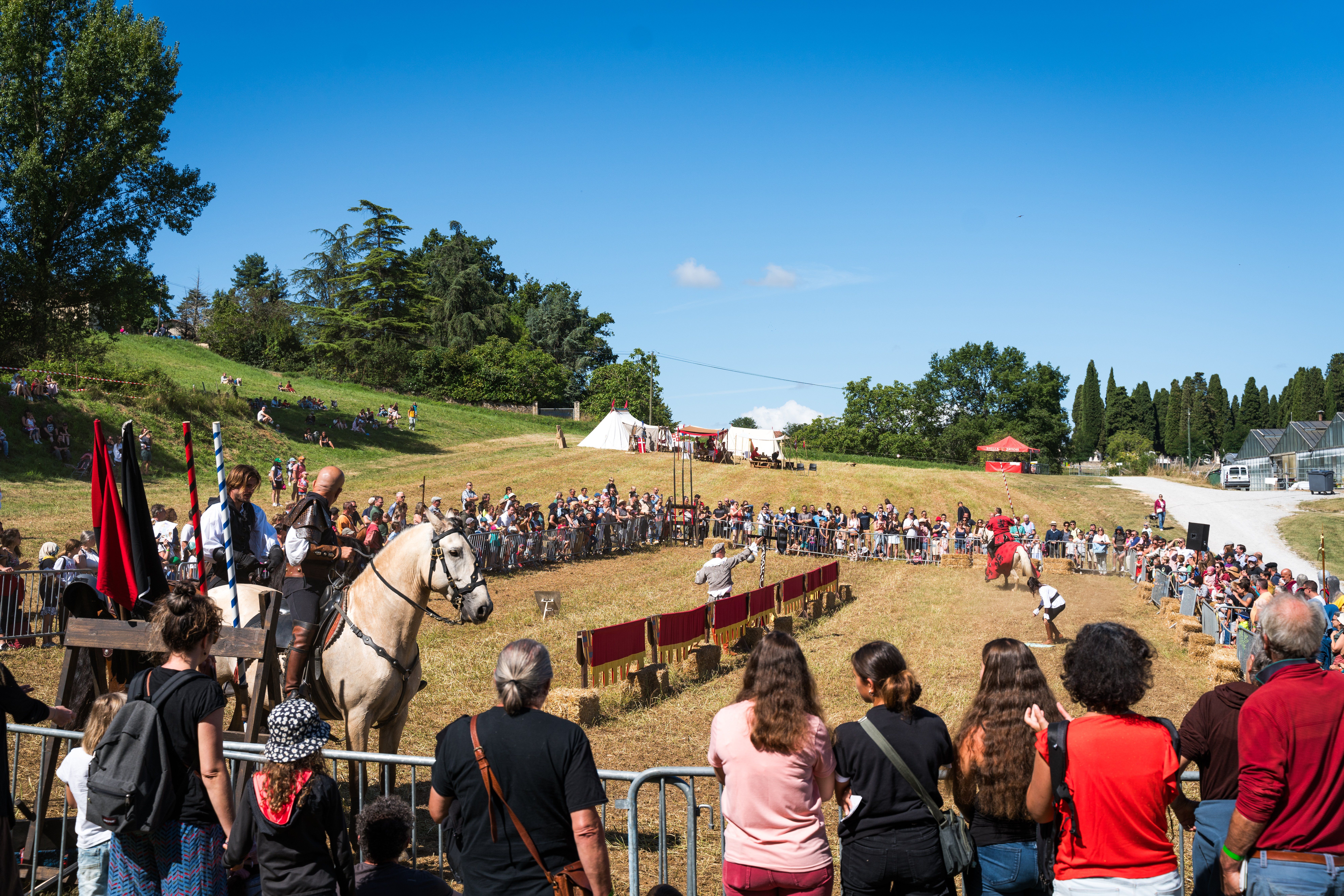 Tout sur la cuisine et art de la table, hygiène, armes, combat, au XVème siècle. Scénettes sur l'art de la guerre, démonstrations de tir à l'arc et à l'arbalète, combats d'épée, chants médiévaux Marché d'artisans. « Ce fut un réel plaisir de découvrir avec vous les aspects les plus originaux du moyen-âge » dira Jacques en assistant à ces démonstrations que vous pourrez vous aussi découvrir tout au long de ces deux journées lors des Médiévales de Gourdon.