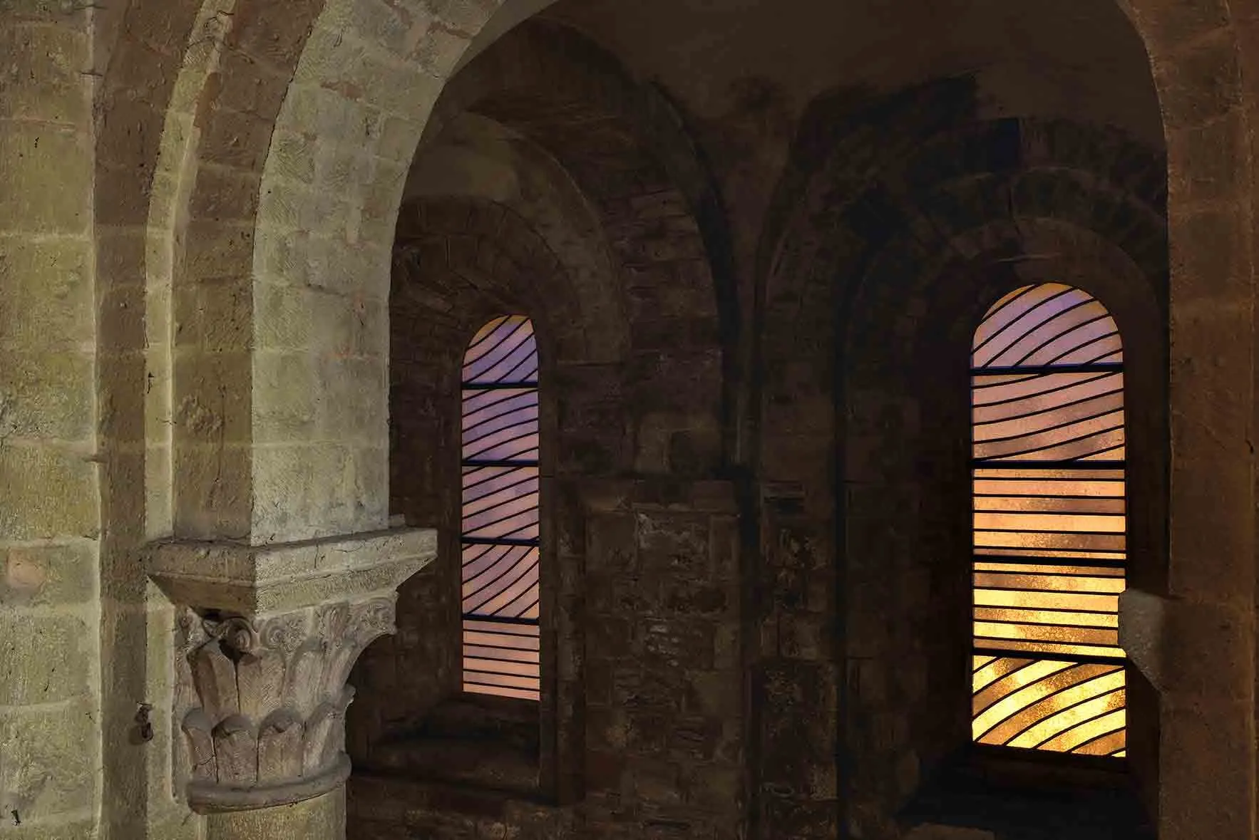 Les vitraux de Pierre Soulages en nocturne – © OFFICE DE TOURISME de CONQUES-MARCILLAC
