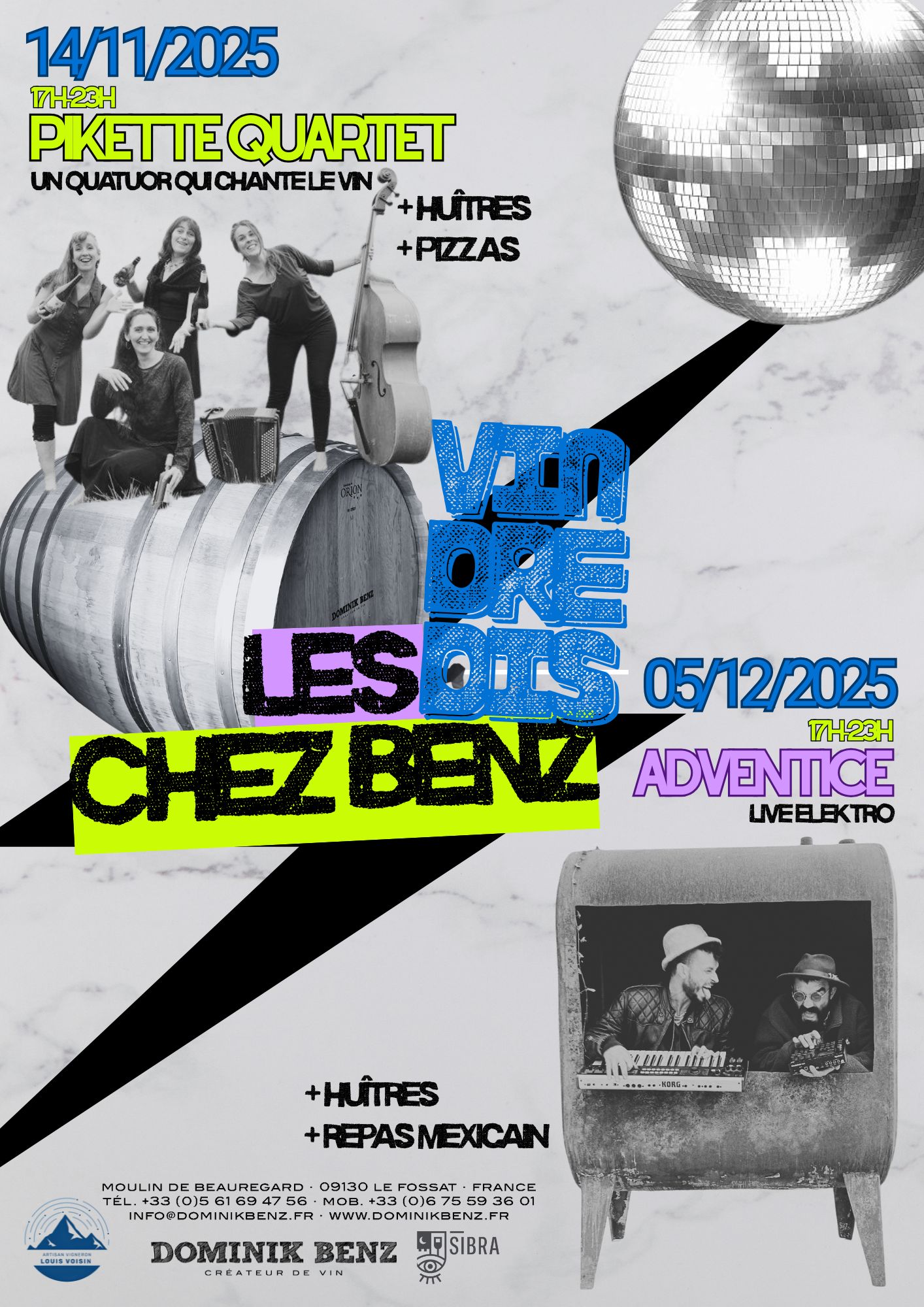 Adventice-Live Elektro – repas mexicain – huîtres – dégustation et vente de vin