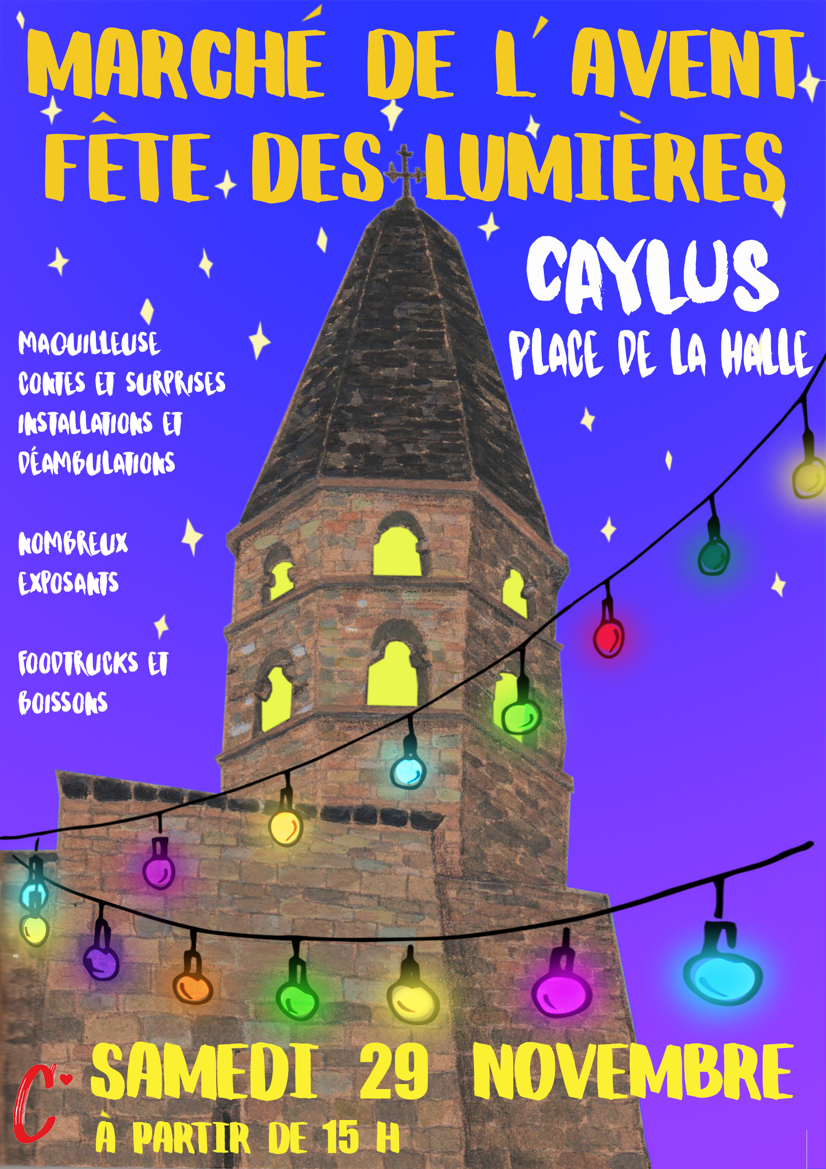 Sur la Place de la Halle, à Caylus, le RDV est donné pour passer un moment de joie et de partage, flâner en toute liberté avec les enfants pour trouver son cadeau de Noël auprès des artisans locaux, déguster un bon verre de vin chaud ou chocolat chaud.