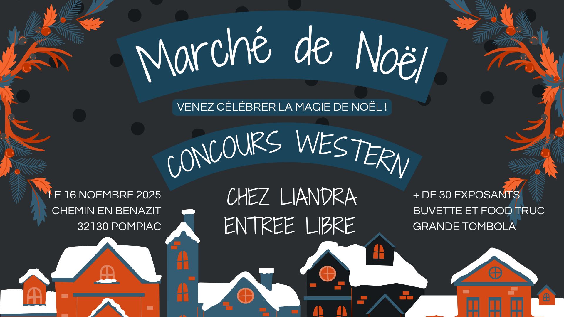 Venez vivre une journée magique et dépaysante, de 9h à 18h, au cœur de l’élevage de chevaux Liandra à Pompiac à l’occasion du marché de Noël. Esprit Western & Fête de Noël !