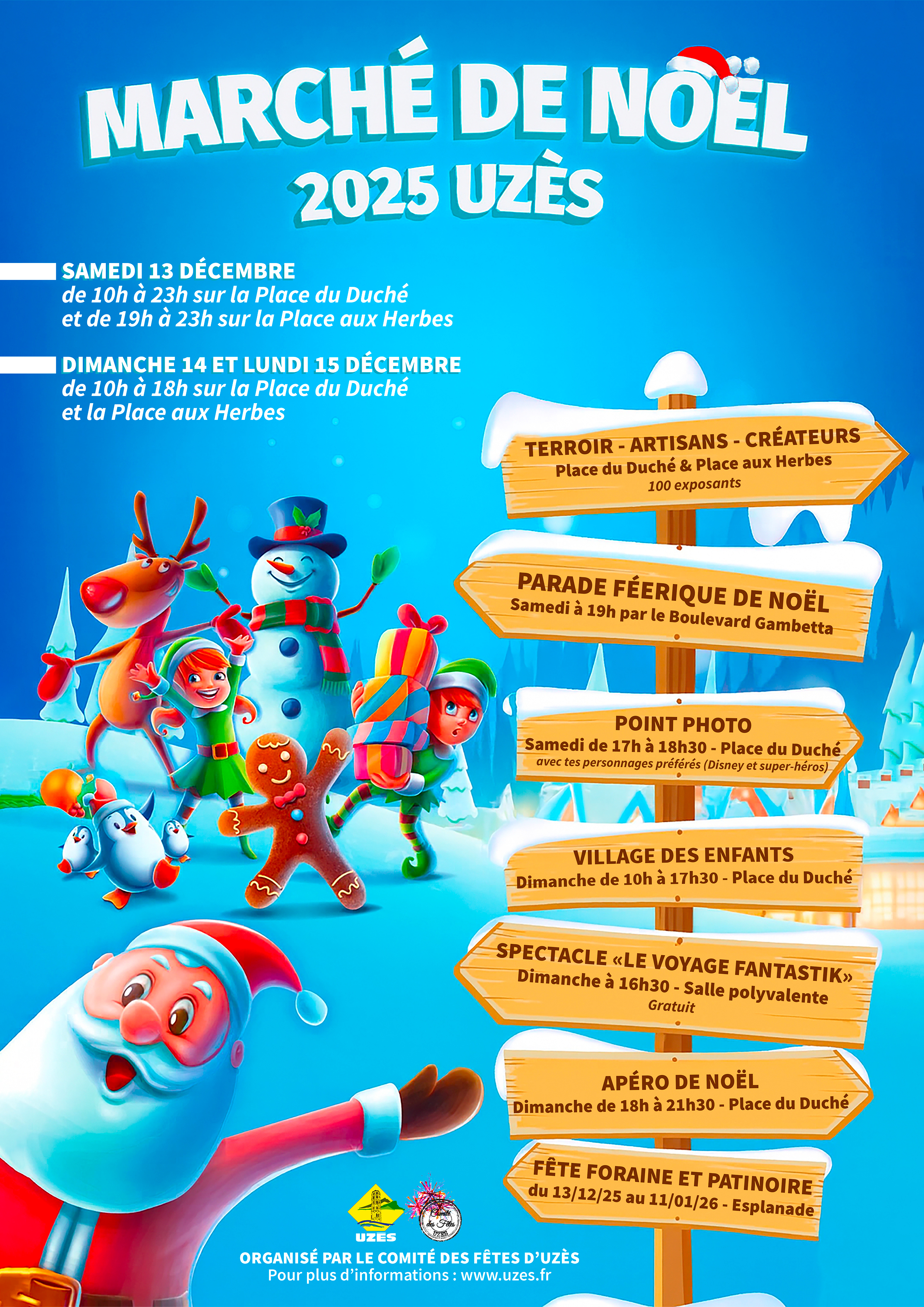 Des étoiles plein les yeux lors de la grande parade féérique de Noël ! Dénichez le cadeau idéal sur les 80 stands d’artisans, créateurs et producteurs de la région, Place aux Herbes. Assistez aux nombreuses animations et jeux au Village des Enfants !