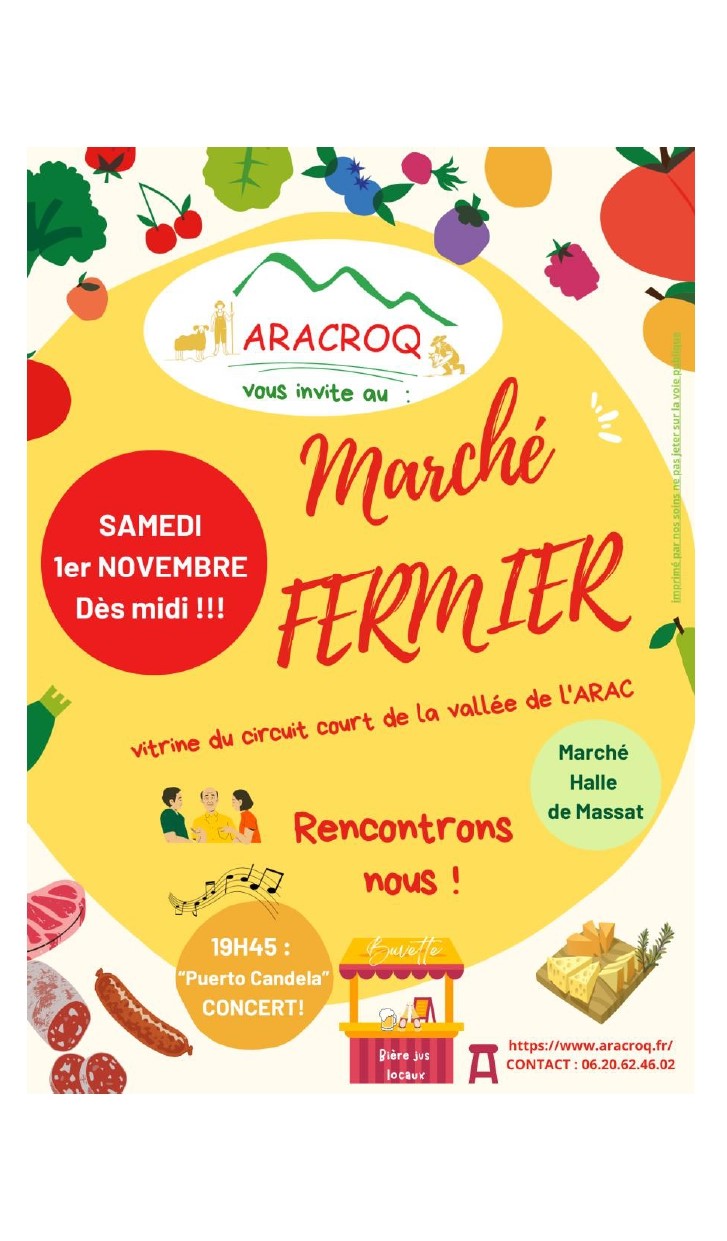 Oyé oyé!!! Le samedi 1er novembre se prépare un marché fermier à Massat sous la halle et à la salle des fêtes. Aracroq vous invite au marché fermier, vitrine du circuit court de la vallée de l’ARAC