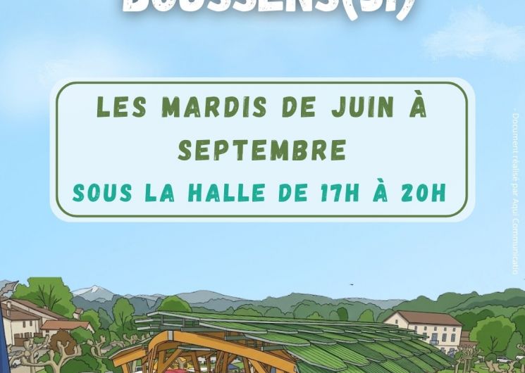 De juin à septembre, chaque mardi en fin de journée, la halle devient un véritable lieu de vie où se rencontrent producteurs locaux, artisans et visiteurs dans une ambiance simple, chaleureuse et authentique. Ici, on flâne, on goûte, on échange… et on savoure pleinement l’esprit du Sud-Ouest.