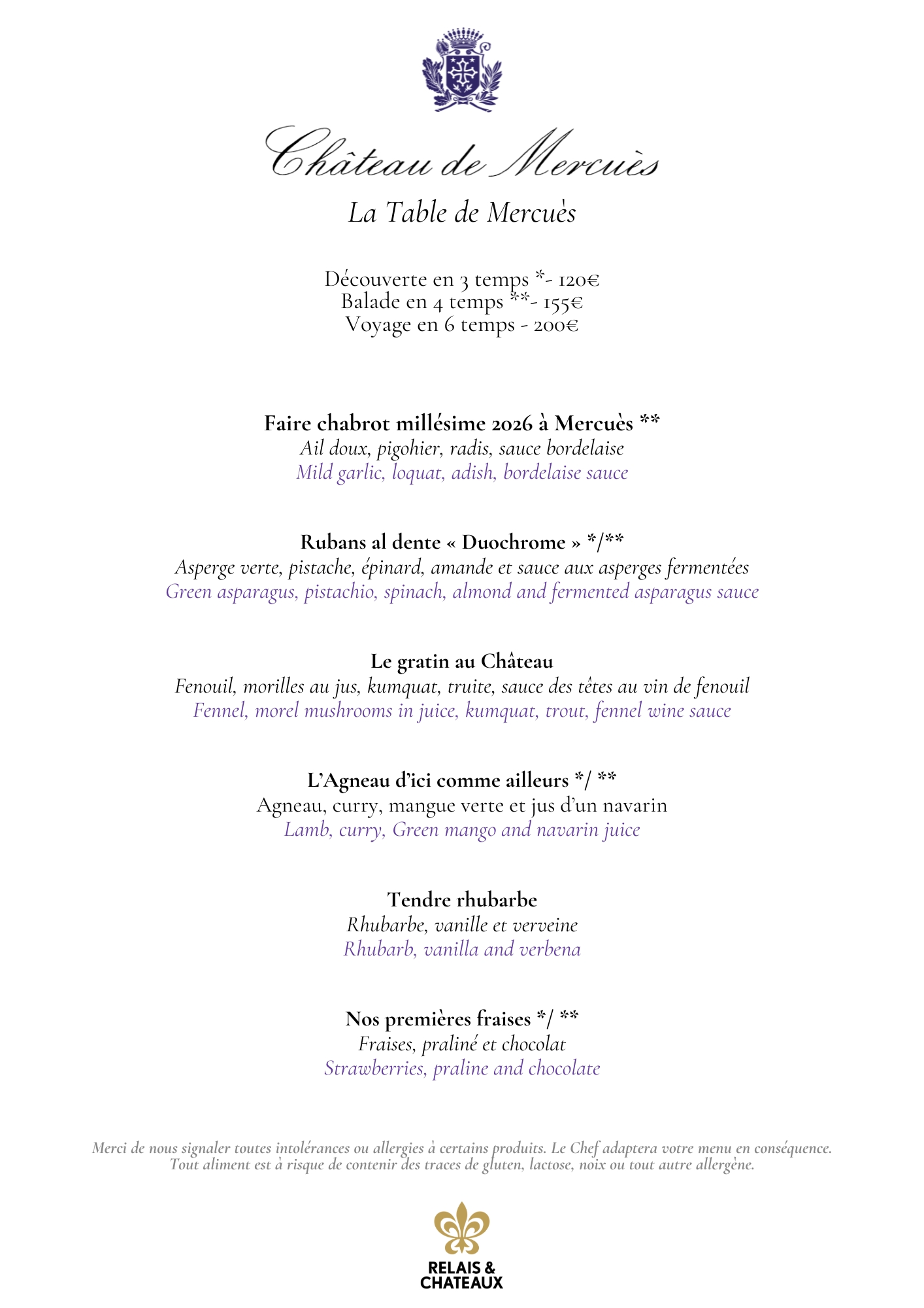 Menu de pâques au Château de Mercuès