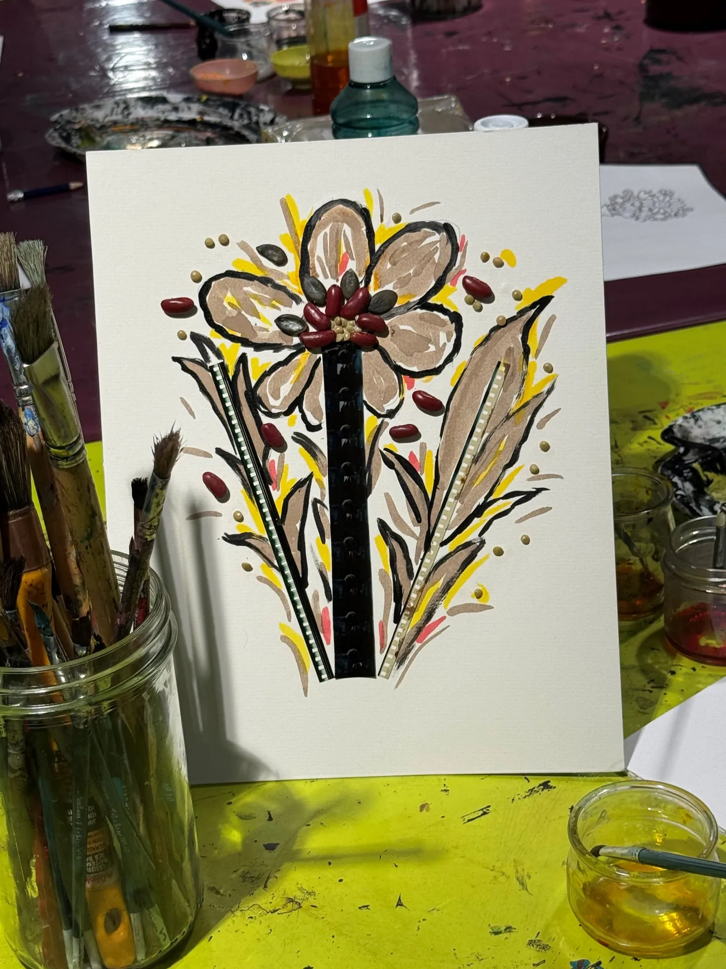 Dans l’esprit d’Agnès Varda, les pellicules de film, autrefois destinées au cinéma, seront réemployées et transformées en tiges. À partir de ce matériau détourné, chaque enfant fera éclore ses propres fleurs, originales et pleines de vie.