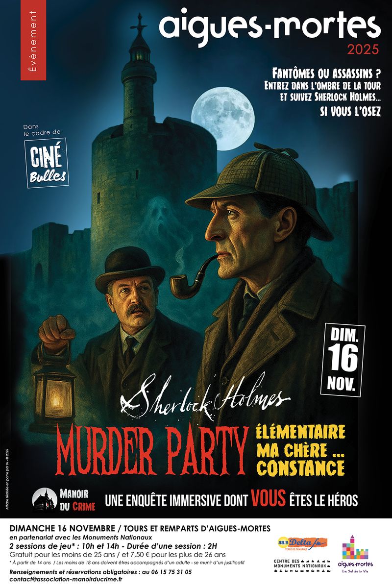 Plongez dans une enquête grandeur nature avec Sherlock Holmes à la Tour de Constance d’Aigues-Mortes ! Entre spectres, énigmes et suspects, vivez une aventure immersive unique le dimanche 16 novembre, au cœur du Festival BD Ciné Bulles.