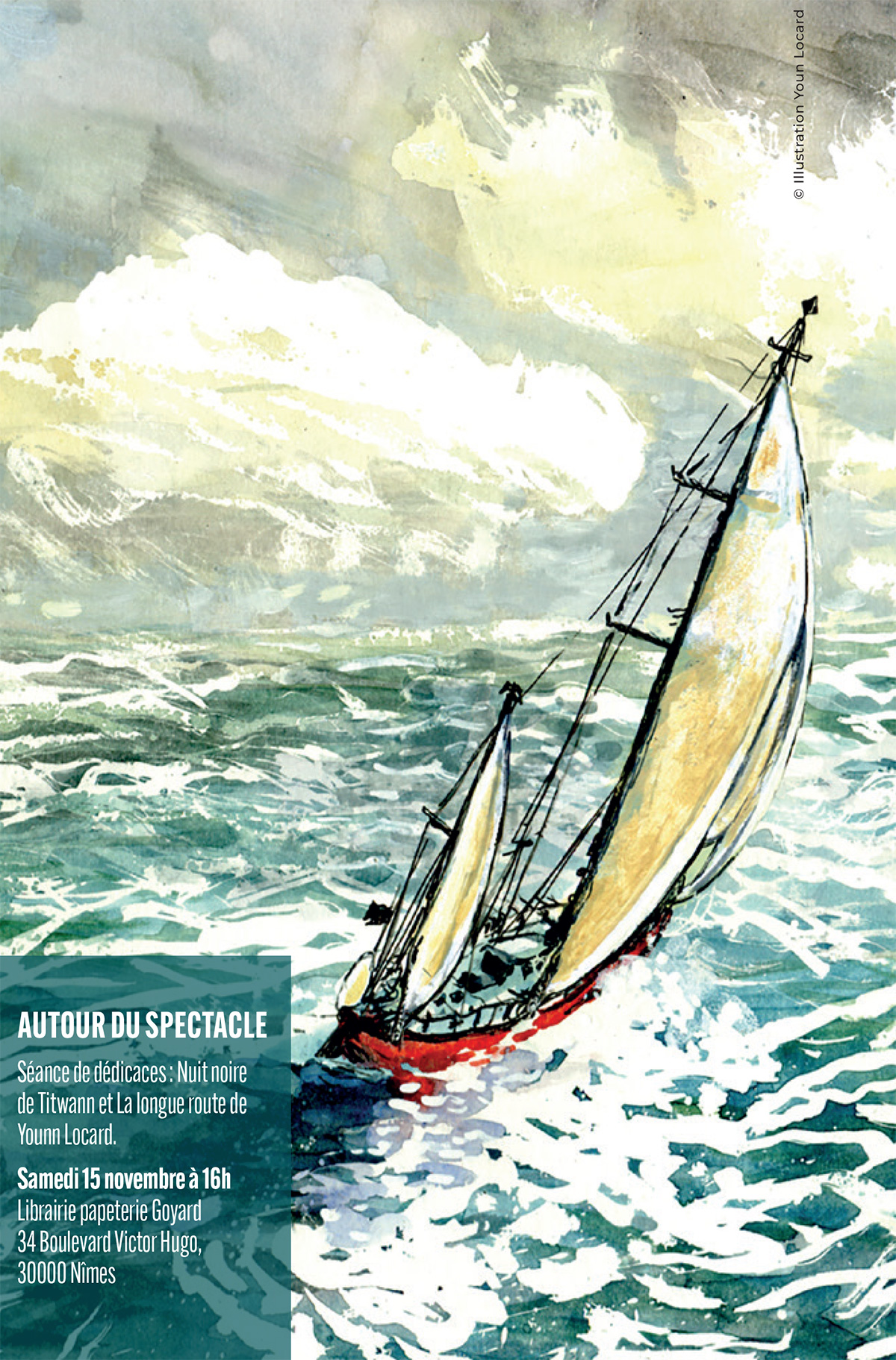 Road-trip océanique autant que récit écologique, Nuit Noire vous embarque à bord du mythique voilier Joshua et au côté du marin Bernard Moitessier pour une aventure maritime, humaine et écologique hors du commun ! L’histoire d’un homme et d’un bateau en quête d’horizons et d’authenticité, partis de Plymouth le 28 août 1968 pour la première course autour du monde sans escale et sans assistance et arrivés à Tahiti le 21 juin 1969 après un tour du monde et demi et 303 jours de mer !