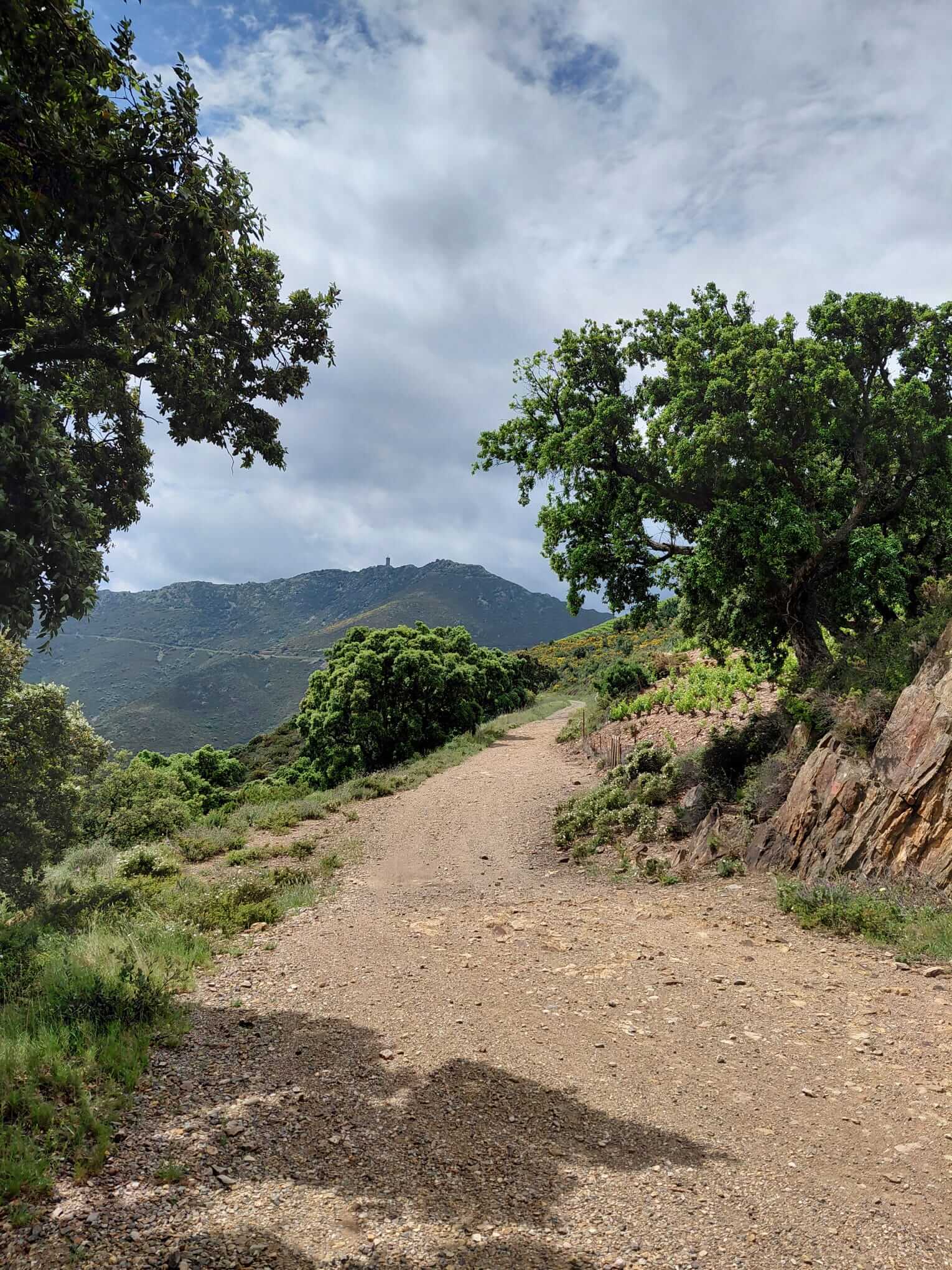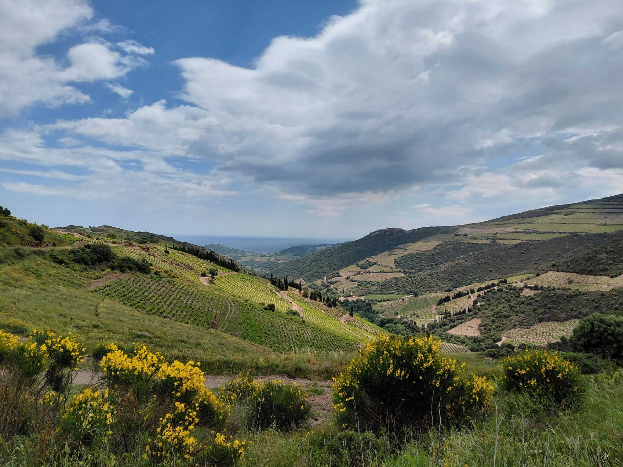 Le parcours offre des panoramas spectaculaires sur la côte Vermeille et le village de Collioure, vus depuis les hauteurs.