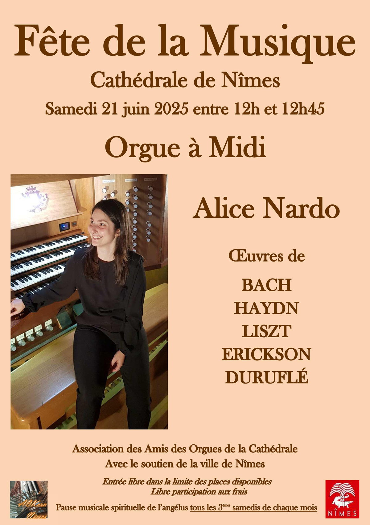 Pause musicale spirituelle à l’orgue Kern de la Cathédrale de Nîmes par l’organiste Alice Nardo entre 12h et 12h40.
