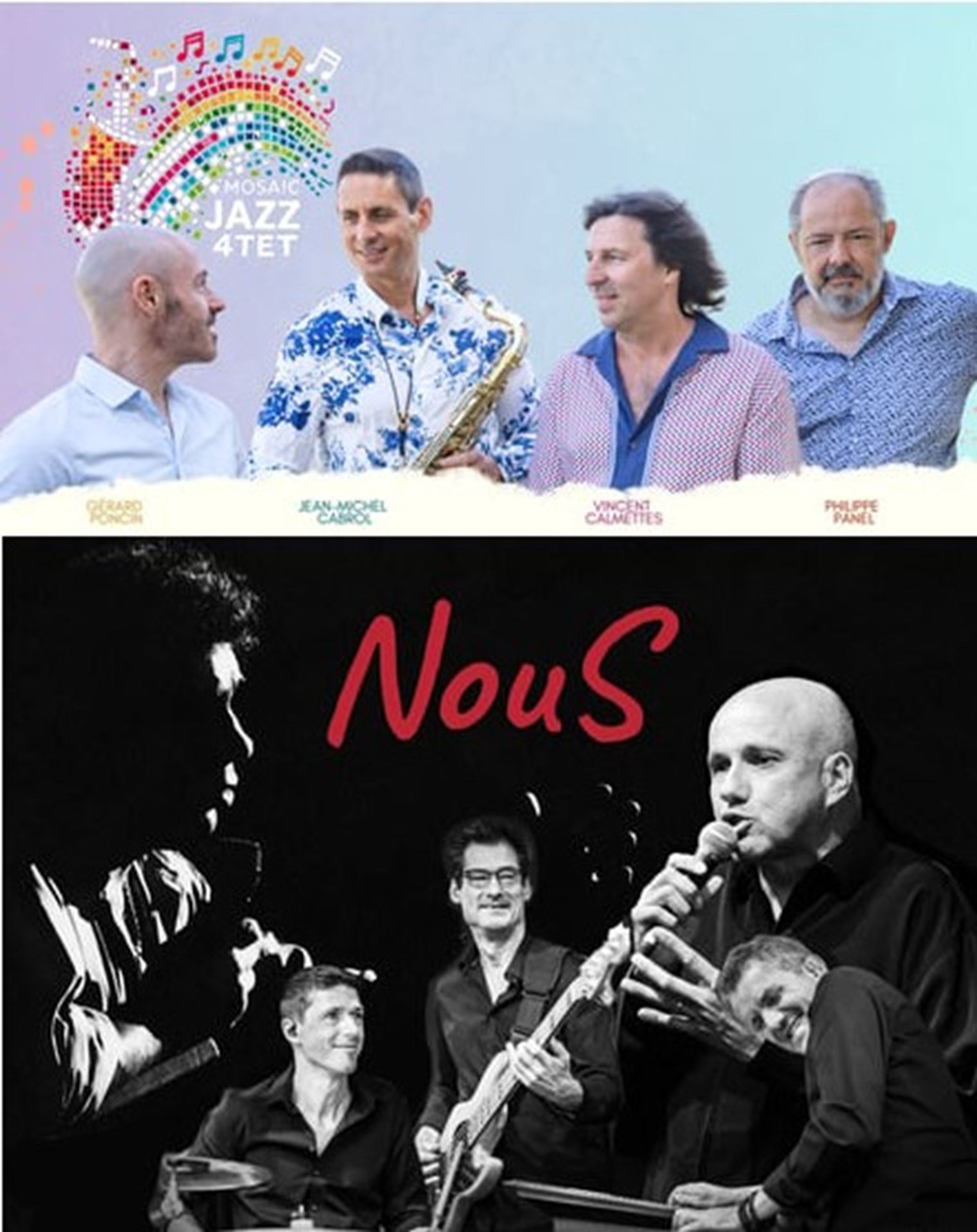 Scène off du village jazz : 20h, Jean-Michel Cabrol – Mosaïc Jazz 4tet et à 22h30, NouS – L’hommage à Nougaro