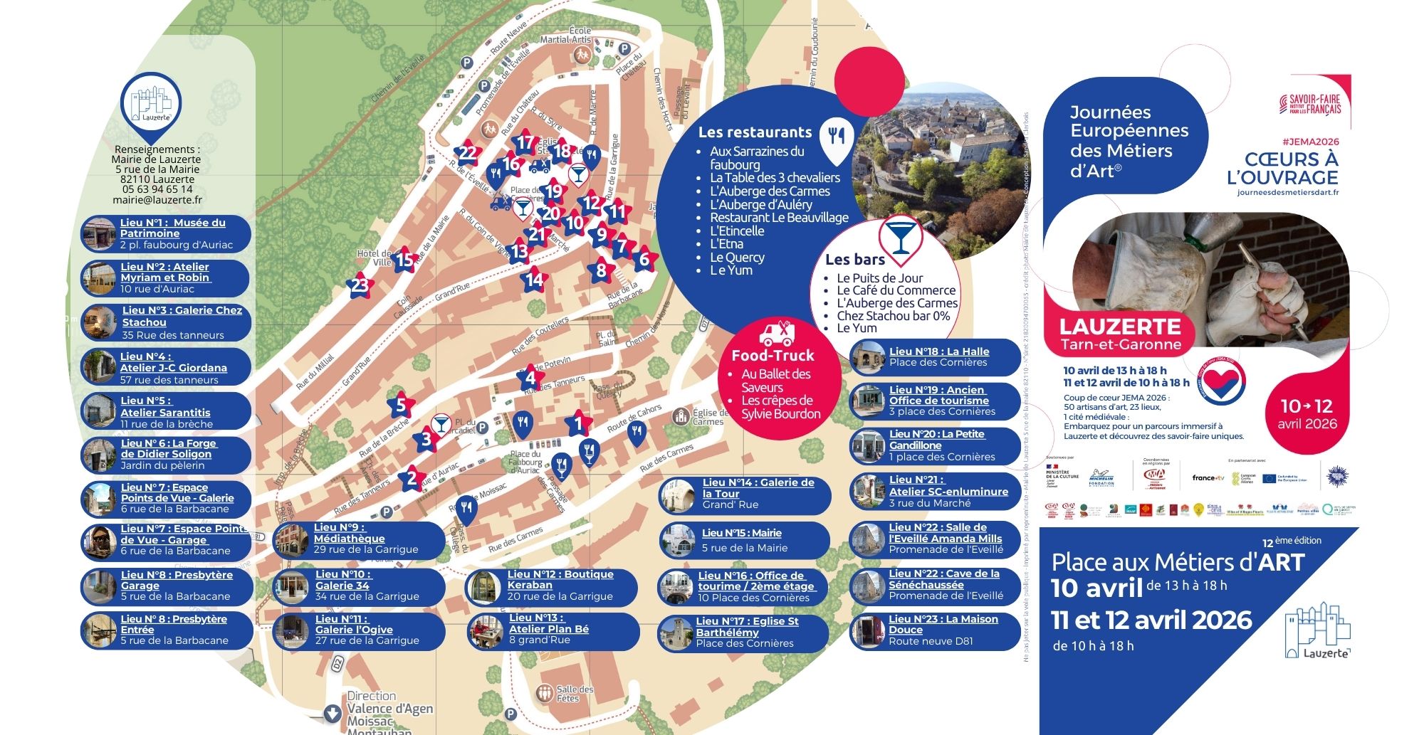 Un événement labellisé « Coup de Cœur JEMA 2026 », fruit d’une dynamique collective portée par la commune de Lauzerte, le Musée du Patrimoine, la Communauté de Communes Pays de Serres en Quercy, la Médiathèque, les associations locales, la Chambre des Métiers 82, Artisan Numérique et plus de 50 artisans d’art et professionnels des Métiers d’Art.