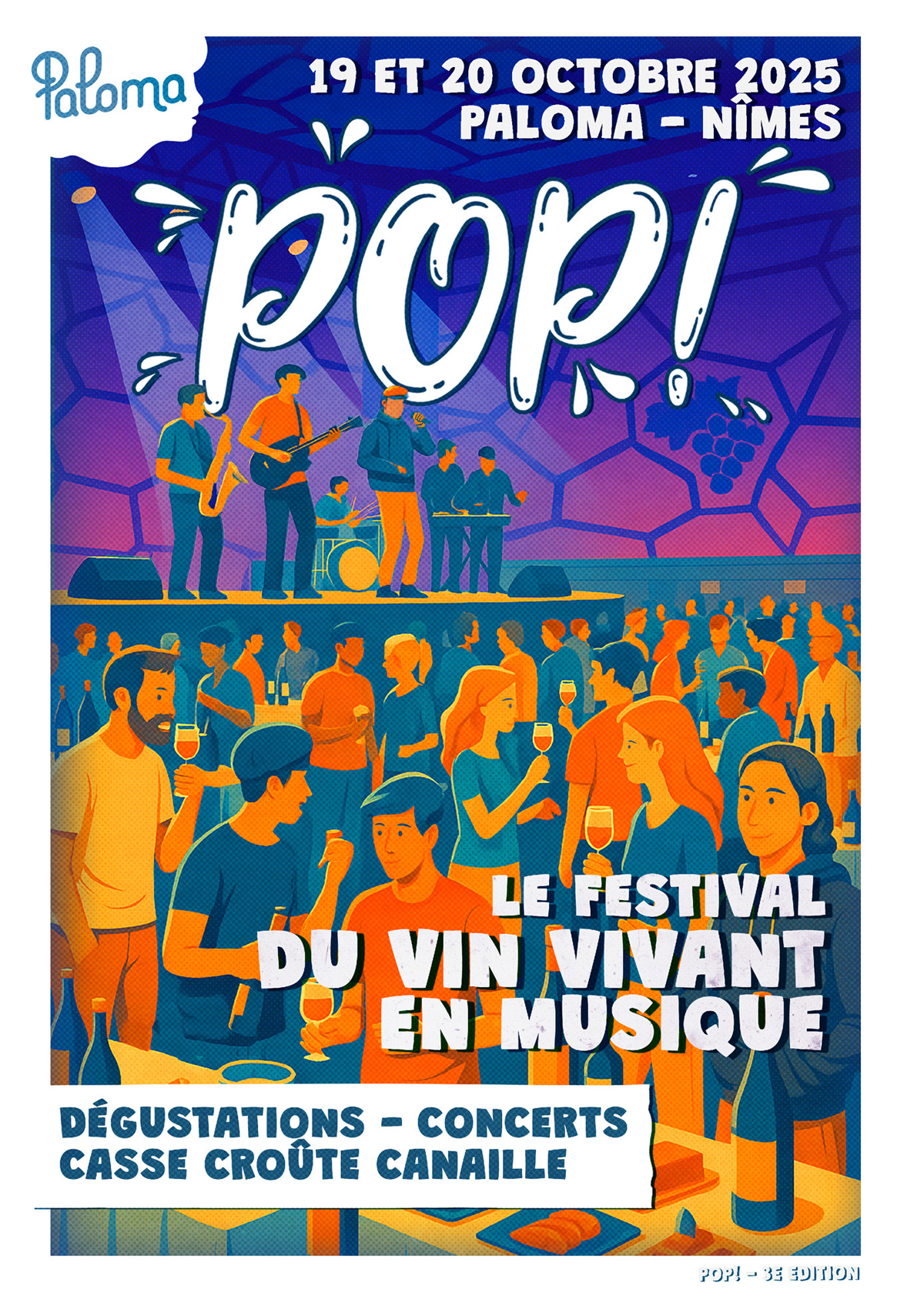 “Pop, le Festival du Vin Vivant en Musique” est de retour à Paloma, Nîmes, pour une 3e édition ! Ouvert aux particuliers et aux professionnel.le.s, il réunira quelques 50 vigneron.ne.s de toute la France et de Catalogne le dimanche 19 et lundi 20 octobre 2025.