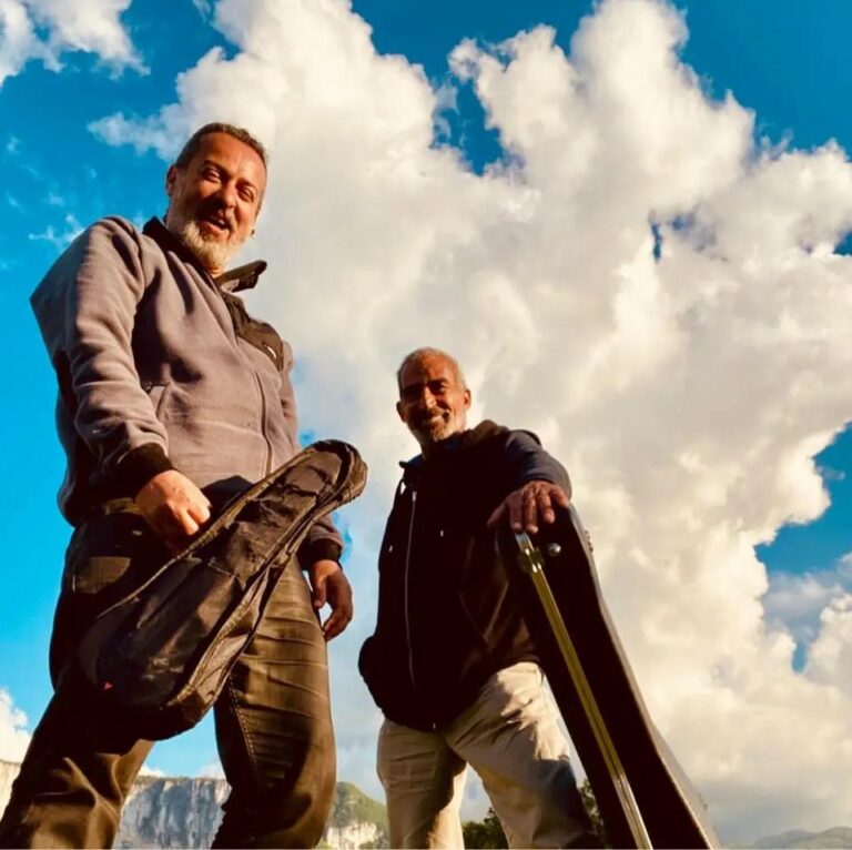 A travers les ondes afropéennes, tu voyageras dans la plus profonde quiétude de l’âme pour accueillir la sérénité la plus tendre, la lucidité la plus clairvoyante et la mesure la plus juste. La joie et la bonne humeur sont les maîtres mots de ce duo lumineux qu’est « Les pieds dans l’eau», né de la belle rencontre de deux musiciens au bord d’un lac, le Salagou.