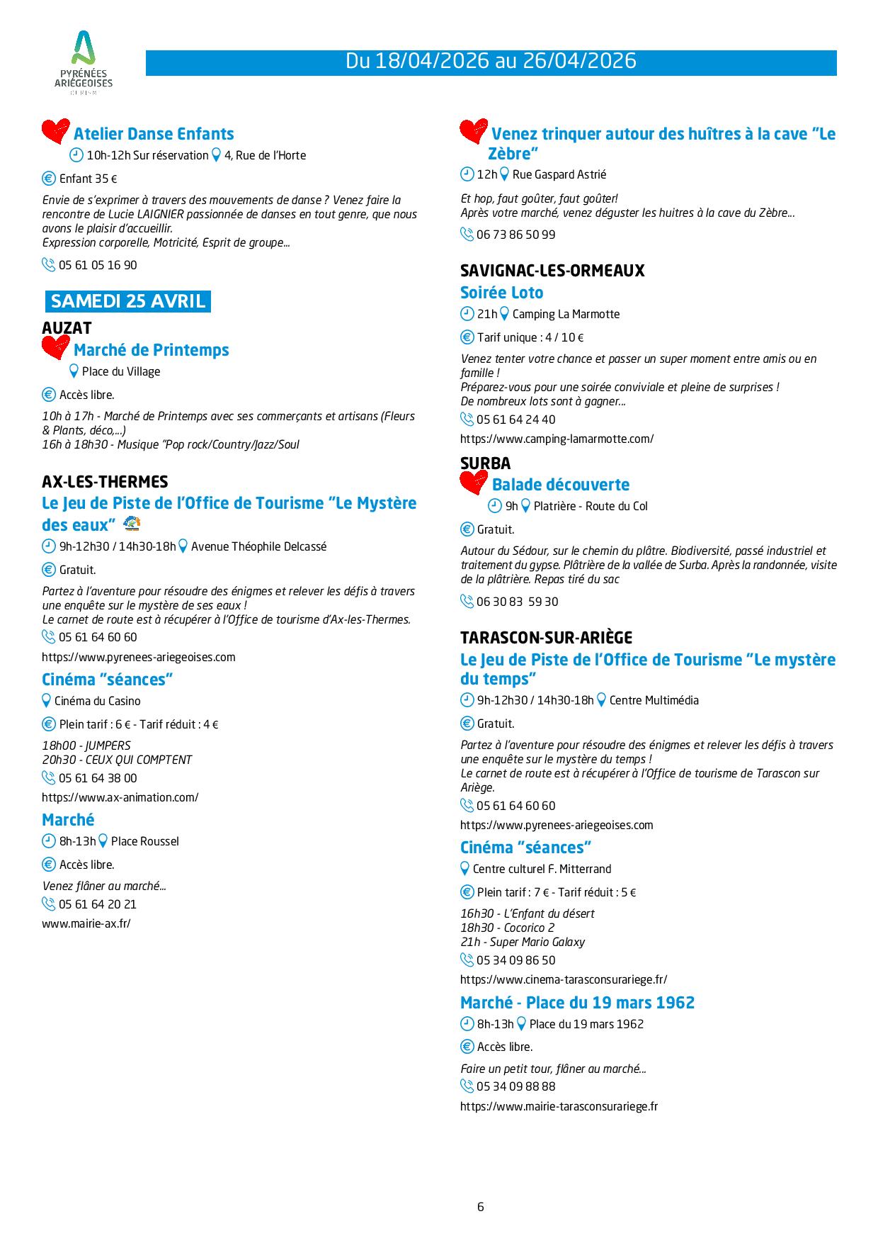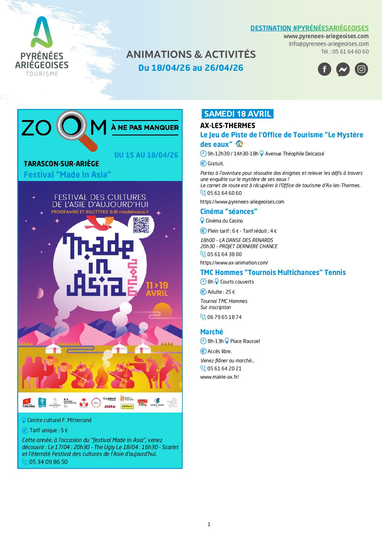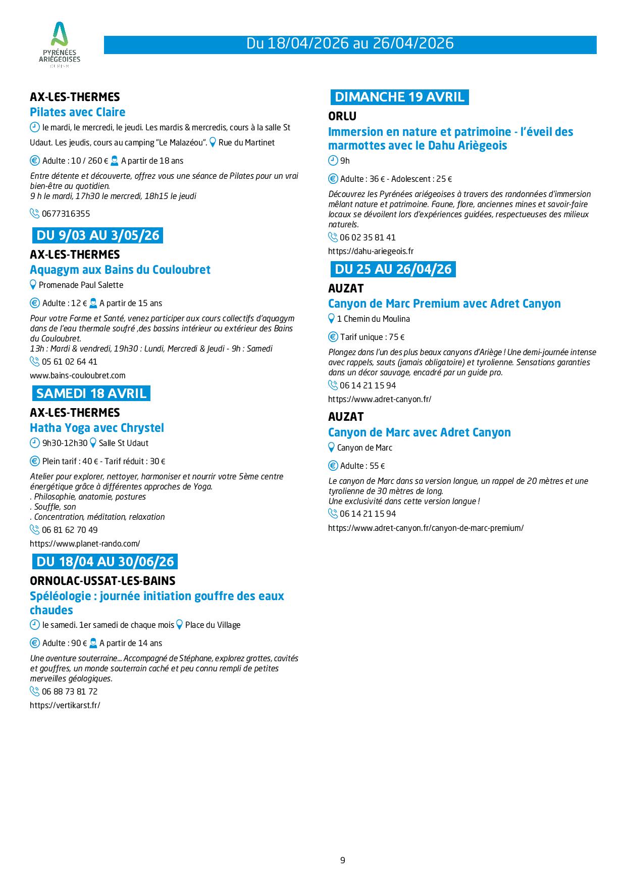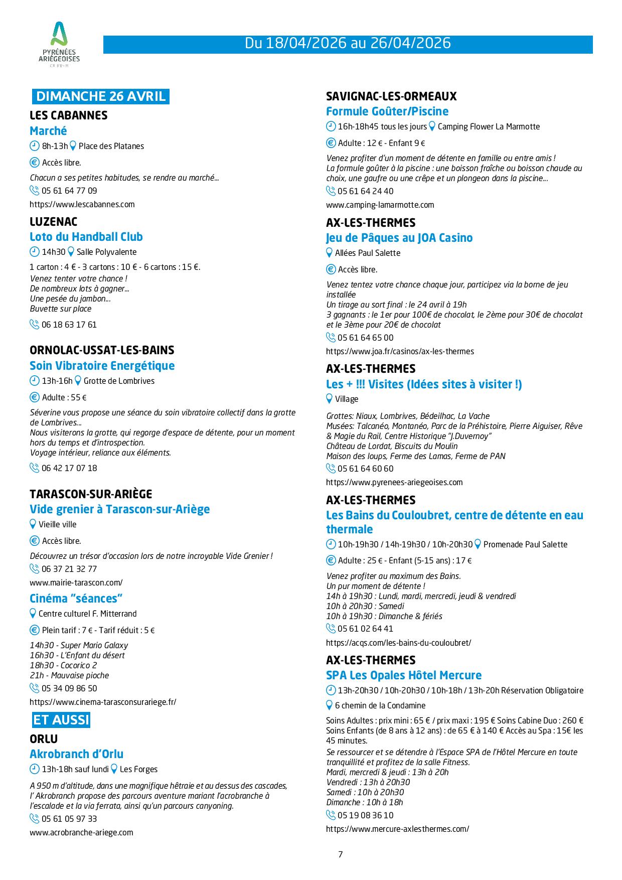 Programme des animations et des activités des Pyrénées Ariégeoises_Ax-les-Thermes – © OTPA