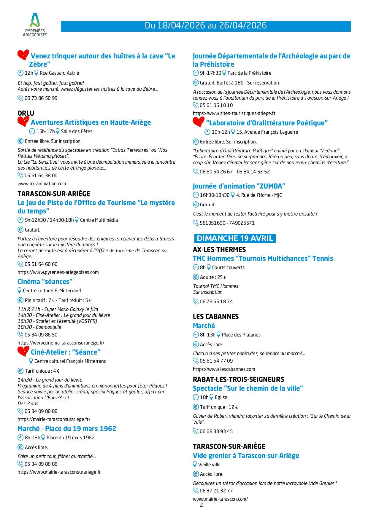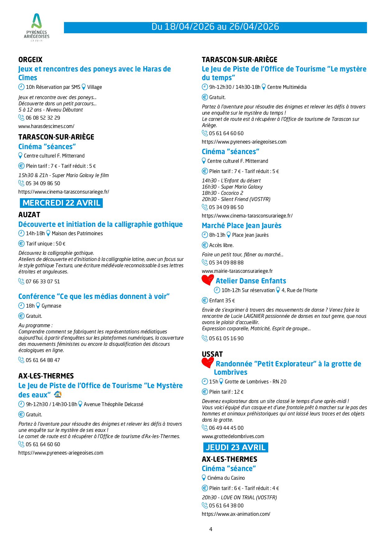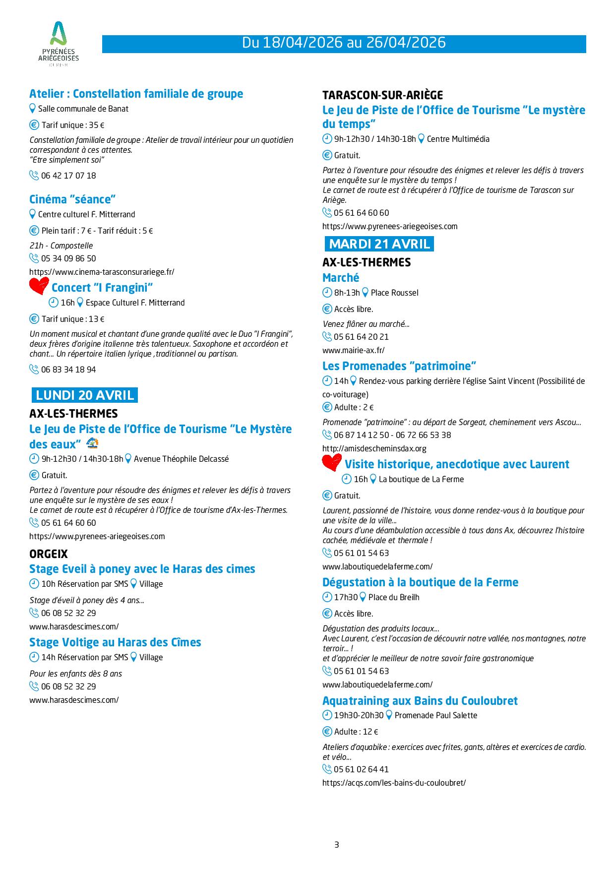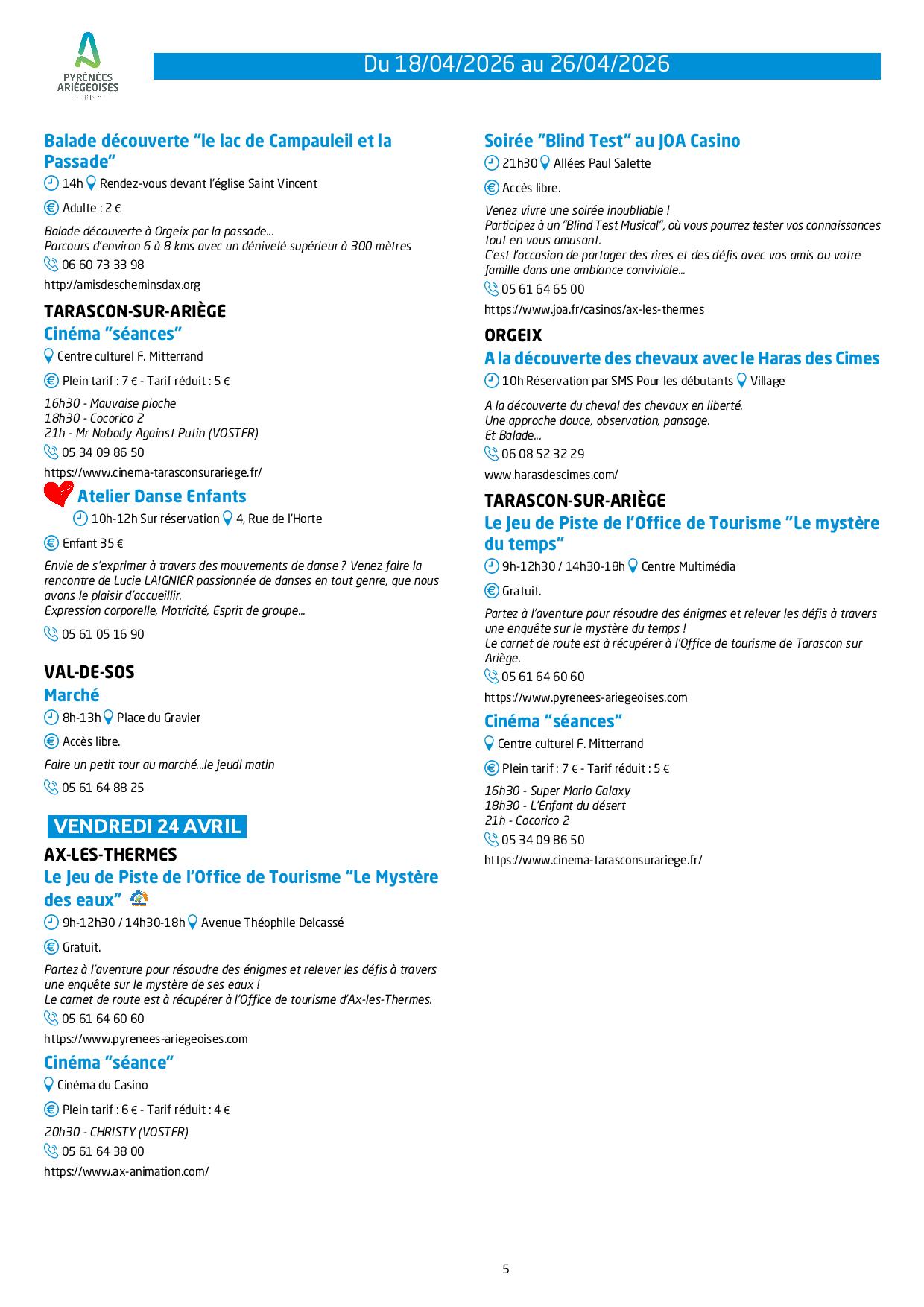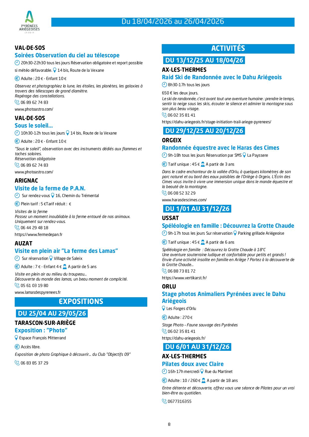 Programme des animations et des activités des Pyrénées Ariégeoises
