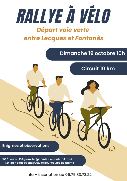 Les vélos ne sont pas fournis. Le parcours se fera sur voie verte et petits chemins caillouteux.