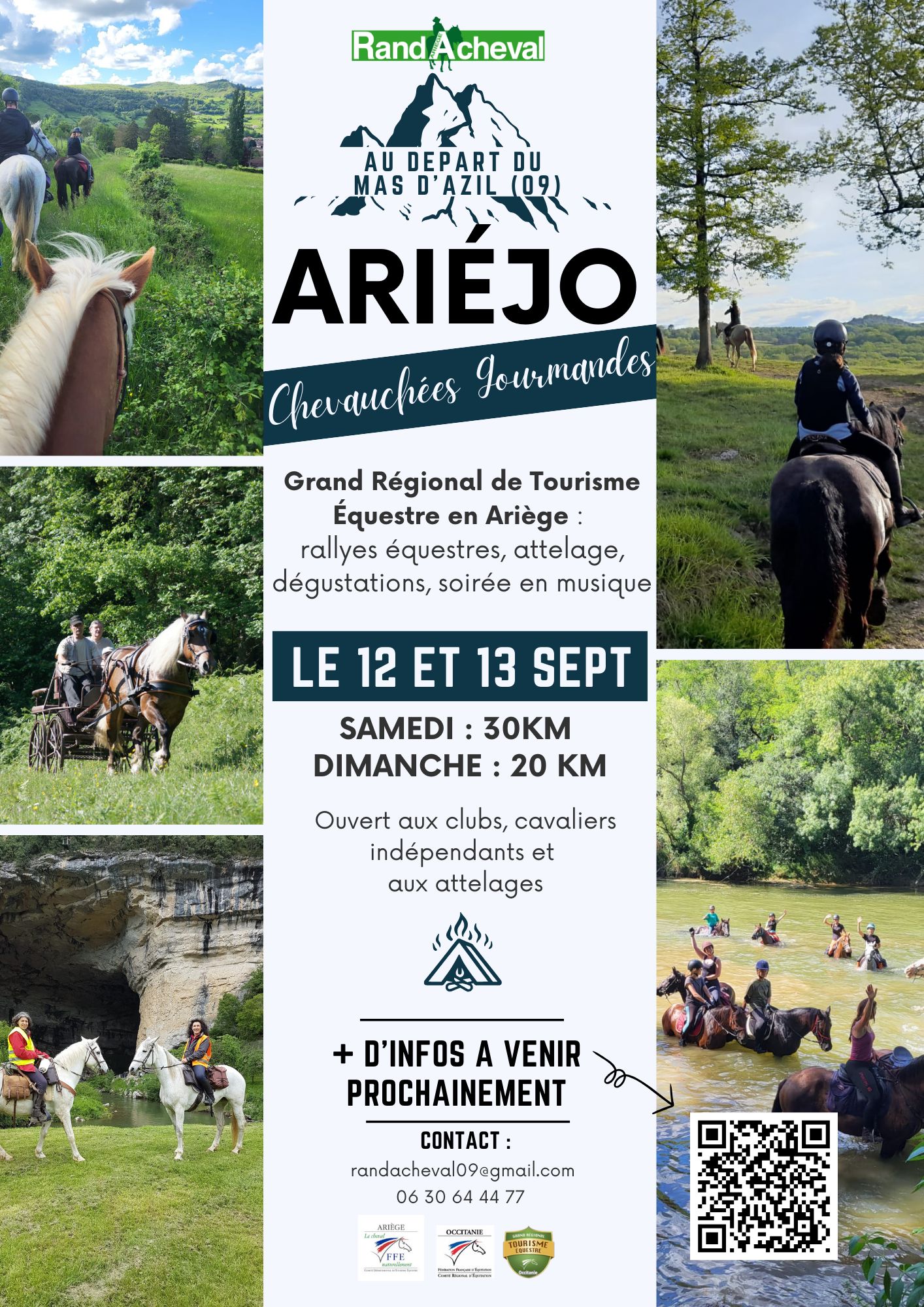 Grand régional de tourisme équestre en Ariège avec rallyes équestres, attelage, dégustations et soirée en musique.