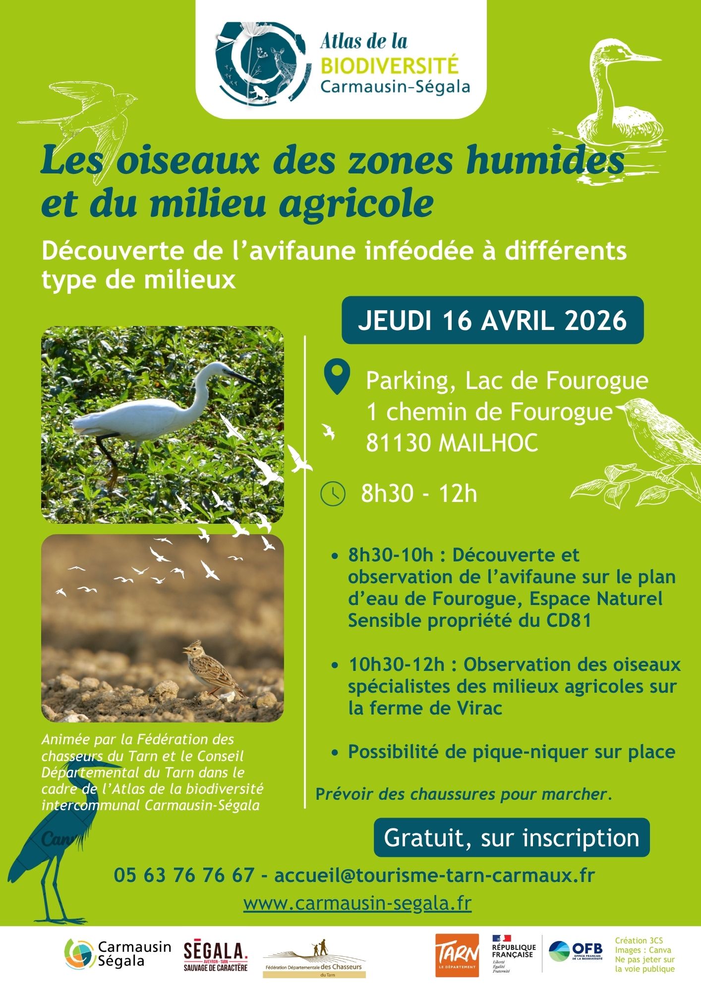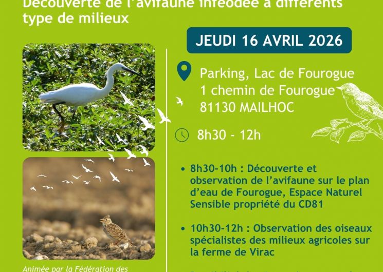 8H30 à 10H : découverte et observation des oiseaux sur le plan d’eau de Fourogue.