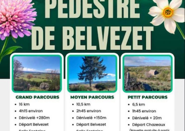 Le samedi 9 mai 2026, l’association Le Clocher Saint Jean Baptiste vous invite à enfiler vos chaussures de marche pour la Randonnée Pédestre de Belvezet. Trois parcours sont proposés :