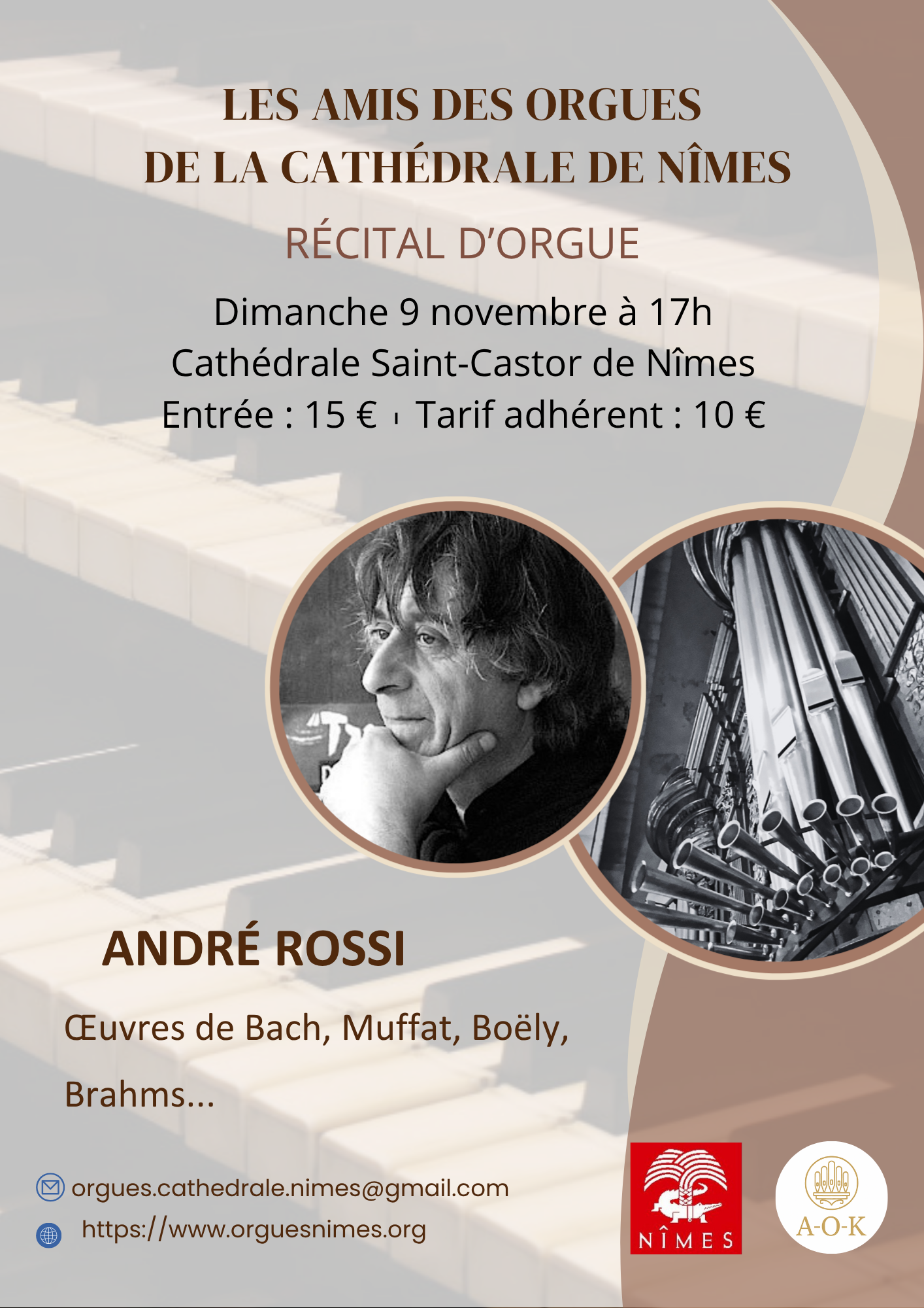 Récital à l’orgue Kern de la Cathédrale de Nîmes par l’organiste André Rossi.