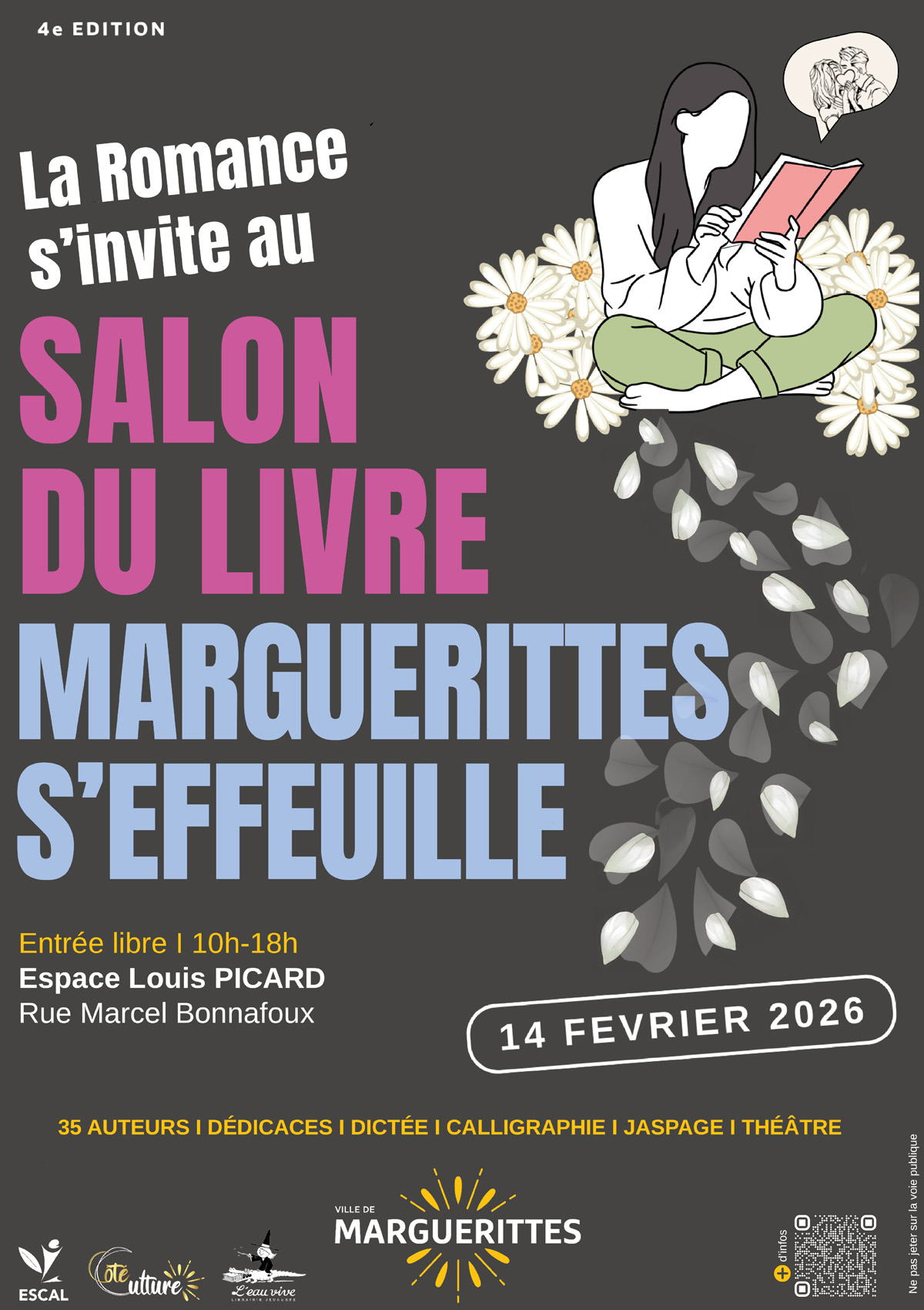 Marguerittes célèbre le plaisir de lire et l’amour avec la 4ème édition du Salon du livre « Marguerittes s’effeuille ». 35 auteurs et autrices réparti(e)s sur 8 plateaux y prendront place et la romance y sera mise en lumière !