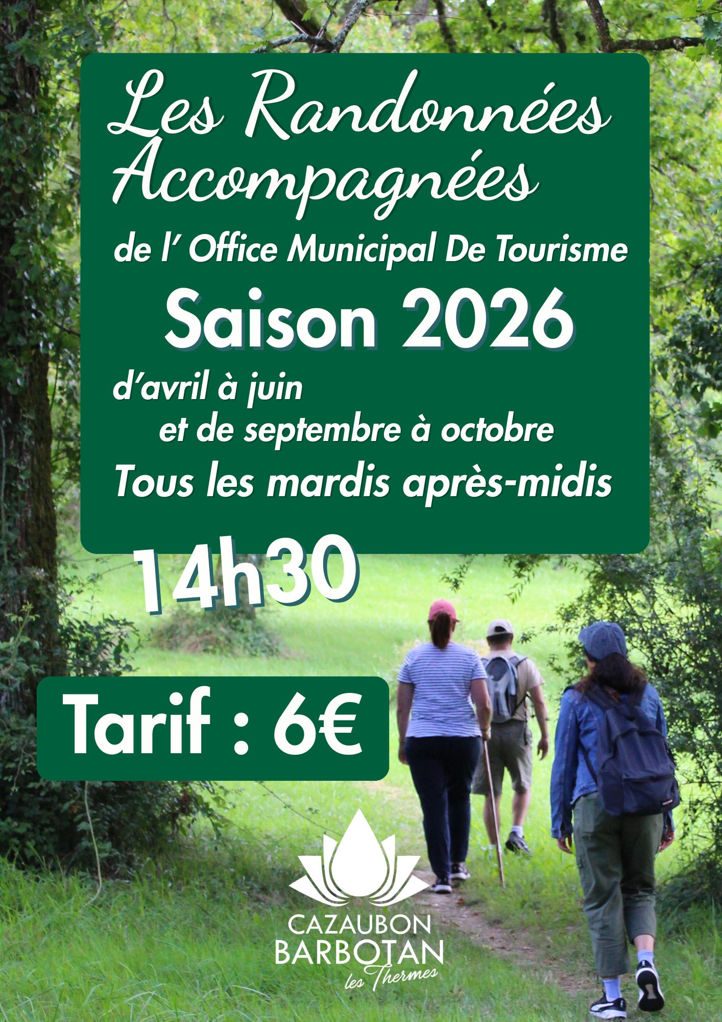 Venez participer aux Slow Randos accompagnées par l’Office de Tourisme et du Thermalisme de Cazaubon – Barbotan-les-Thermes, le rendez-vous du mardi des amoureux de la Nature et de la Randonnée !