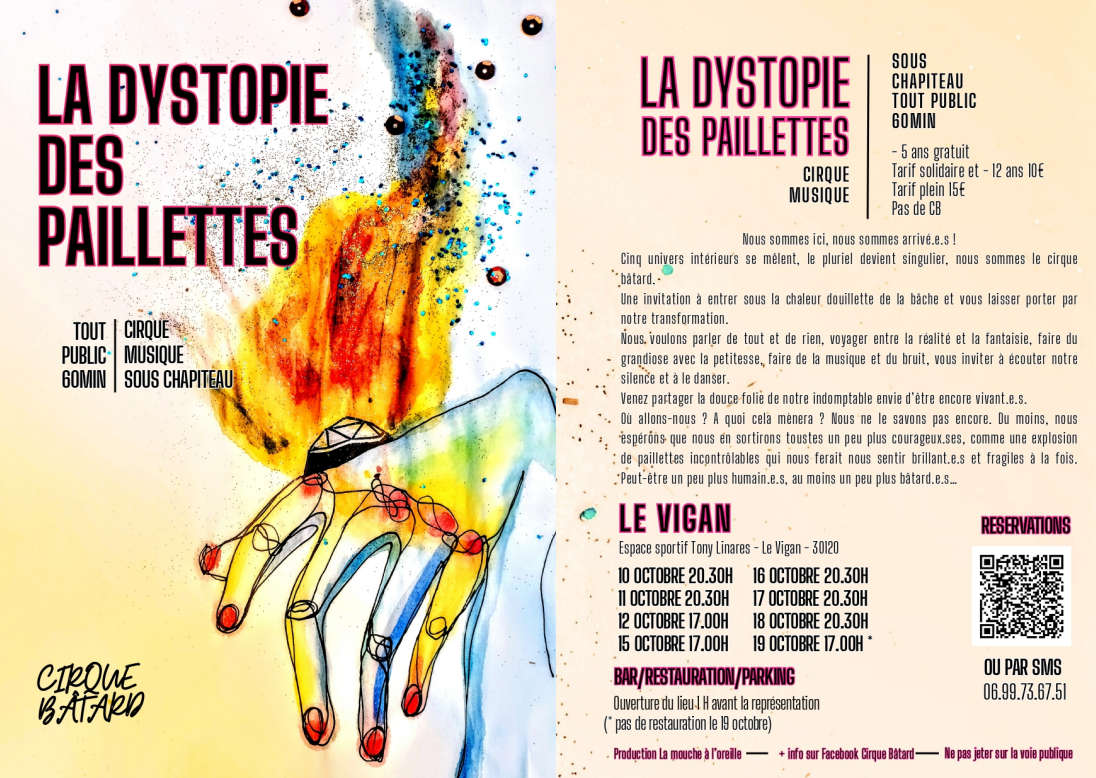 Pensez à réserver sur hello asso : https://www.helloasso.com/associations/la-mouche-a-l-oreille/evenements/la-dystopie-des-pailletes ou par sms au 06 99 73 67 51
