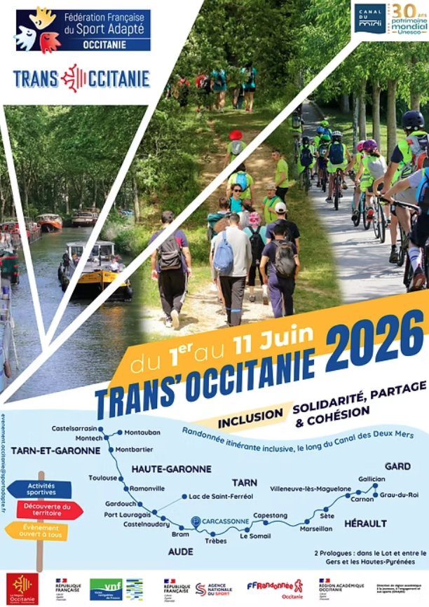 La Trans’Occitanie est un événement régional itinérant de sport adapté qui traverse plusieurs départements d’Occitanie dans une dynamique de coopération territoriale.