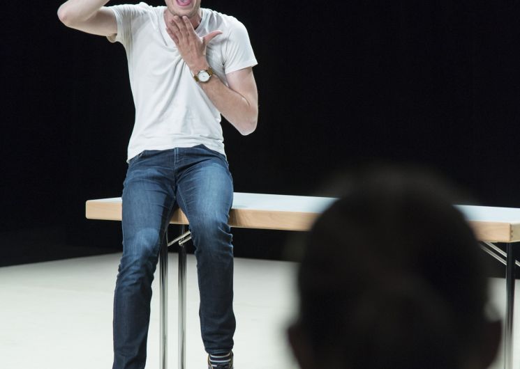 Mise en scène de François Gremaud d’après Jean Racine Le sujet de la pièce est ici tout entier contenu dans l’exclamation. Oui, ce point » d’admiration « , tel qu’il était appelé au temps de Racine. C’est le pari fou de François Gremaud pour transmettre son adoration de cette pièce unique de Racine, de sa langue fabuleuse, de la force des passions Sur scène, un comédien conférencier débordant (un peu trop?) d’enthousiasme tente d'aborder simultanément les différentes facettes de la pièce : les merveilles de l’alexandrin, les origines mythologiques des personnages, le contexte historique de l’écriture de la pièce…et, emporté par son récit, se prend bientôt à jouer tous les personnages, récitant vers enflammés, avec son livre comme seul accessoire pour mimer la couronne de Phèdre, la barbe de Théramène ou l’armure de Thésée On vit tout de cette » comédie » réécrite par Gremaud dans le feu de sa passion ; on repart flottant, le sourire aux lèvres – vibrant de ce partage, de cette joie pure du théâtre et de sa célébration du monde. Une passion communicative ! A partir de 14 ans