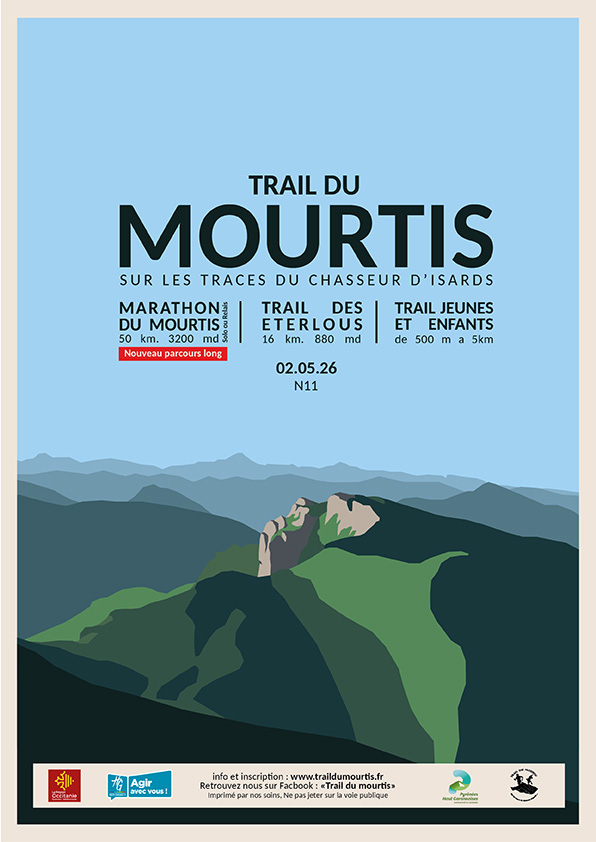 Marathon du Mourtis : 48 km 3000m D+ (seul ou en relais) – Trail des Eterlous : 16 km 880D+ – Trail jeunes et enfants de 500m à 5 km ( de 6 à 17 ans) – Marché artisanal de producteurs locaux, animations, restauration.