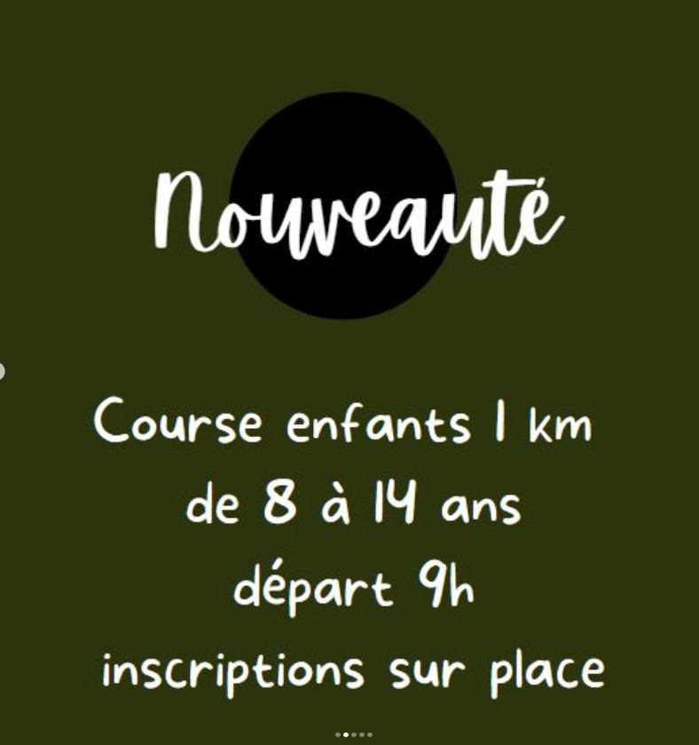– courses enfant 1km de 8 à 14 ans. Départ à 9h. Inscritions sur place