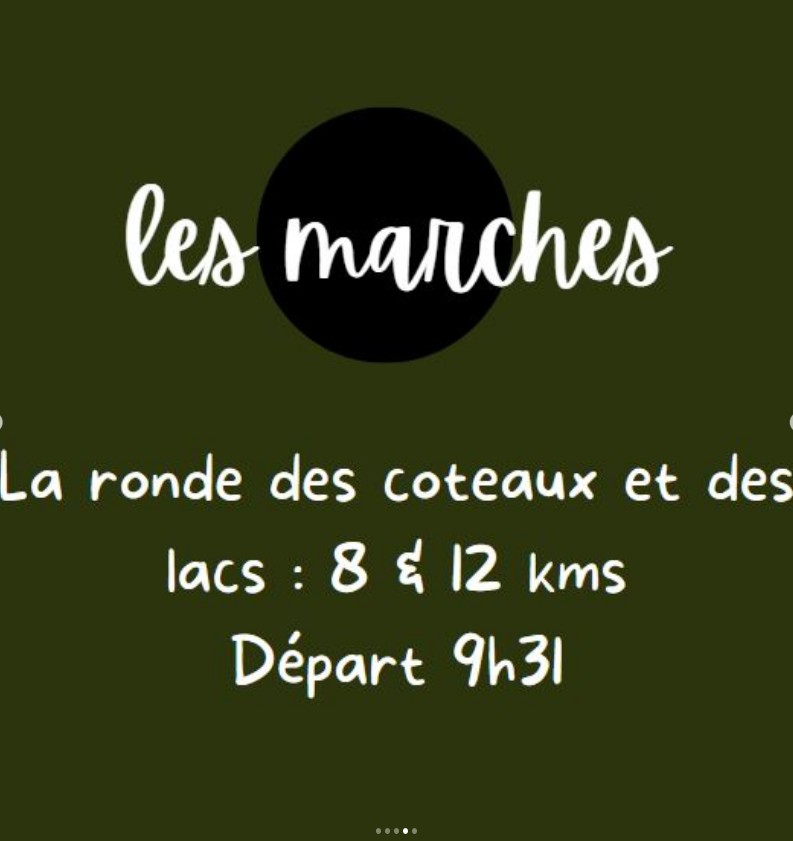 – 2 circuits proposés « ronde des coteaux et des lacs » de 8 et 12 km. Départ 9h31