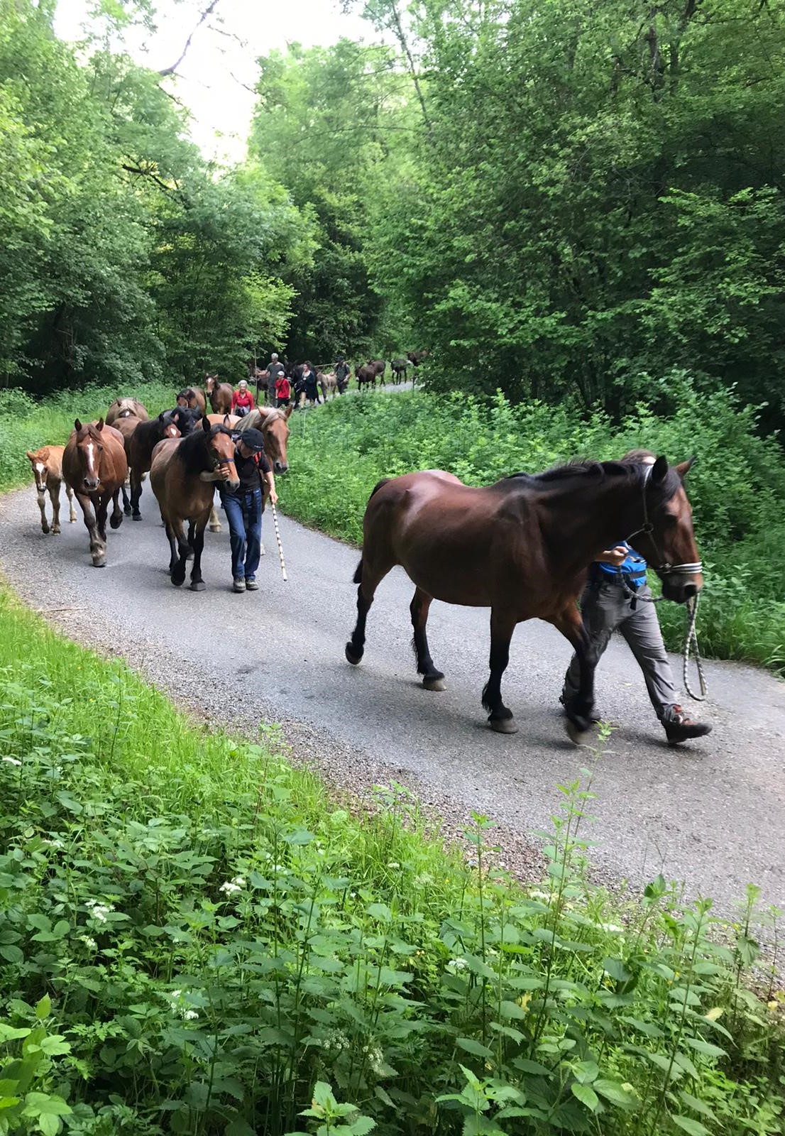 chevaux sur pistes.jpg – © Transhumance en Bellongue