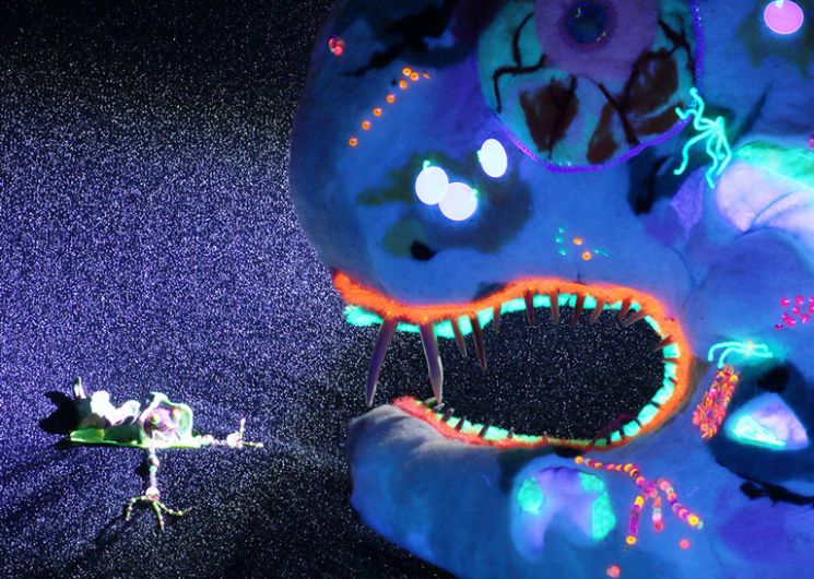 Couleurs, matières et textiles aux textures différentes se mêlent, dans une mise en scène de créatures démesurées à la fois familières et étranges.