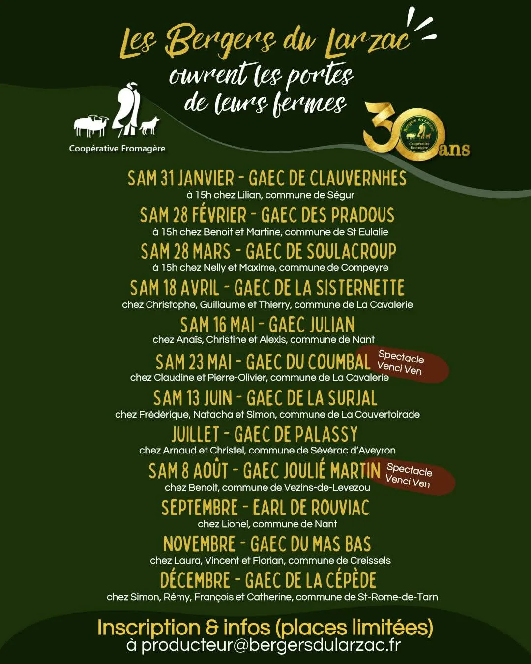 Venez découvrir les coulisses, poser vos questions, comprendre notre modèle coopératif… et surtout passer un moment convivial au cœur du Larzac ou du Lévezou. Depuis 30 ans, notre force, c’est le collectif. Cette année, on a envie de le célébrer avec vous.